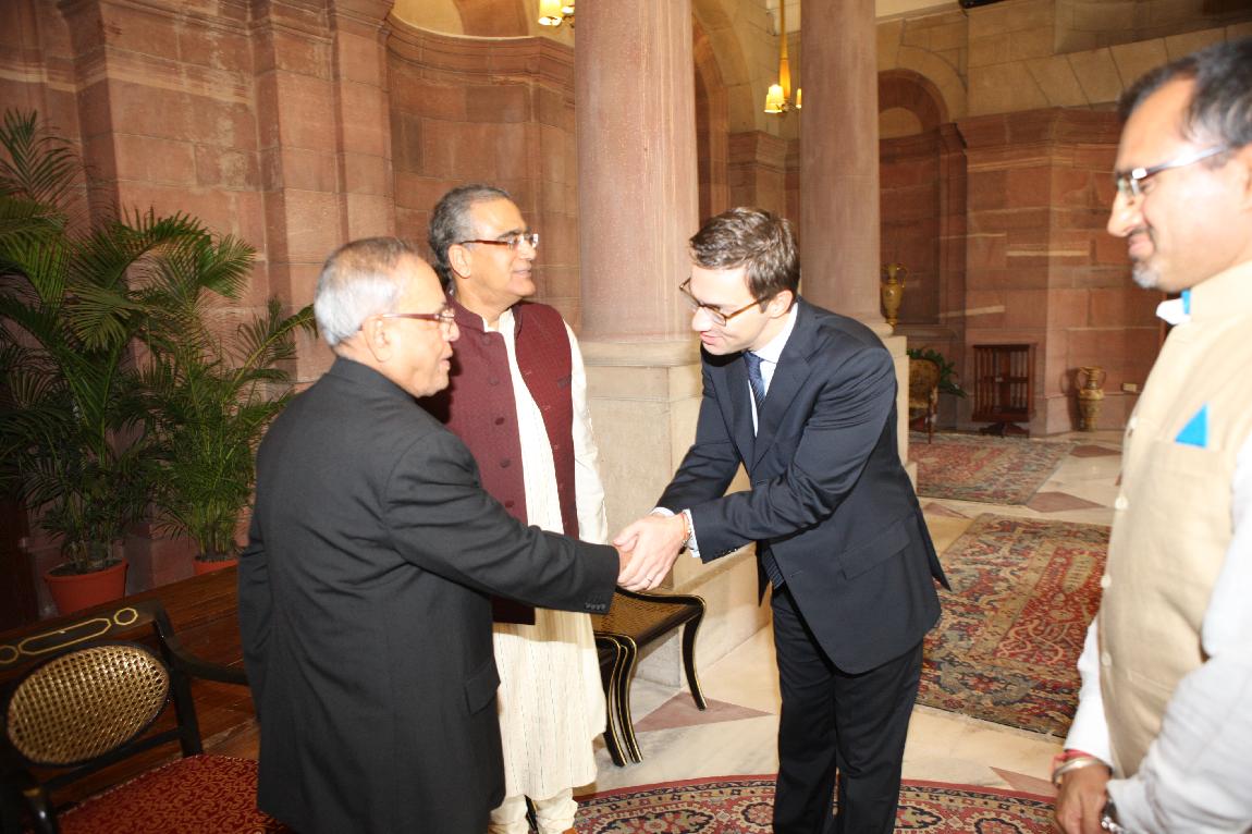 | Caption: | The President of India, Shri Pranab Mukherjee meeting with Shri Aroon Purie with others on November 24, 2012 |