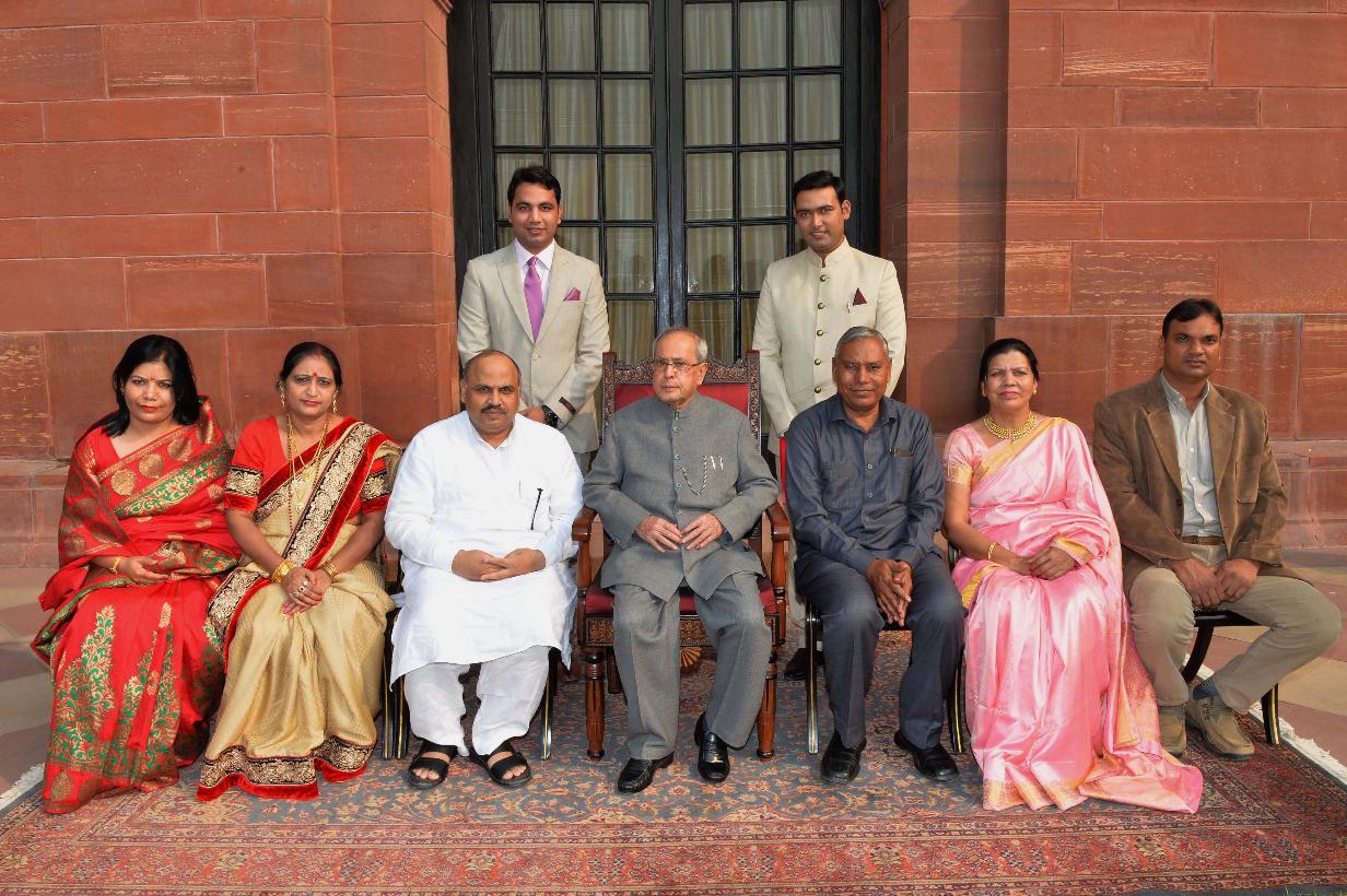 | Caption: | The President of India, Shri Pranab Mukherjee meeting with Shri Satpal Sharma, Peethadhyaksh, Shri Devikoop (Bhadrakali) Mandir and others from Kurukshetra, at Rashtrapati Bhavan on November 16, 2015. |