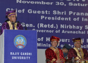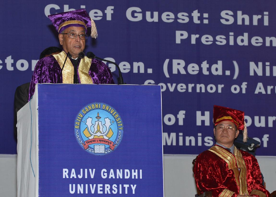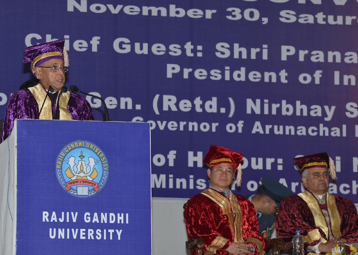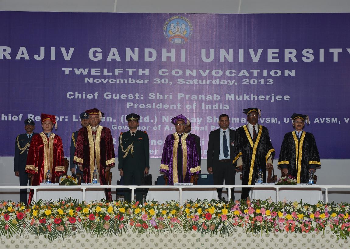 | Caption: | The President of India, Shri Pranab Mukherjee during the XII Convocation of Rajiv Gandhi University at Doimukh in Arunachal Pradesh on Nov 30, 2013 |