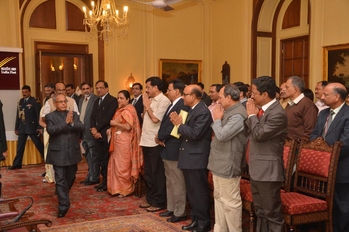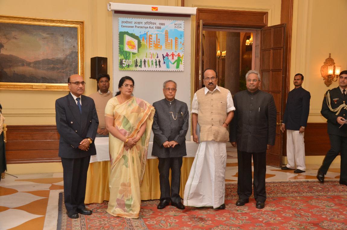 | Caption: | The President of India, Shri Pranab Mukherjee Releasing Stamp on the Occasion of Silver Jubilee of Consumer Protection Act on November 29, 2012 |