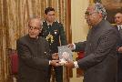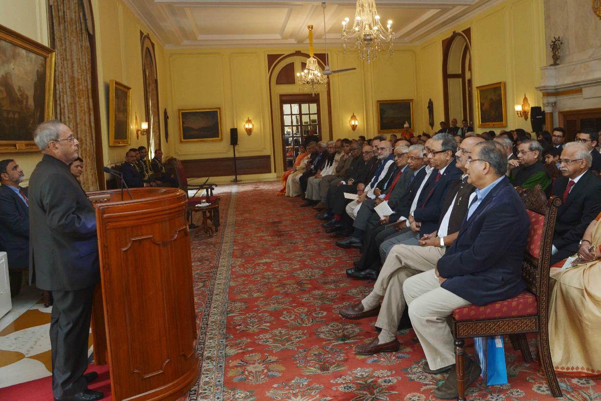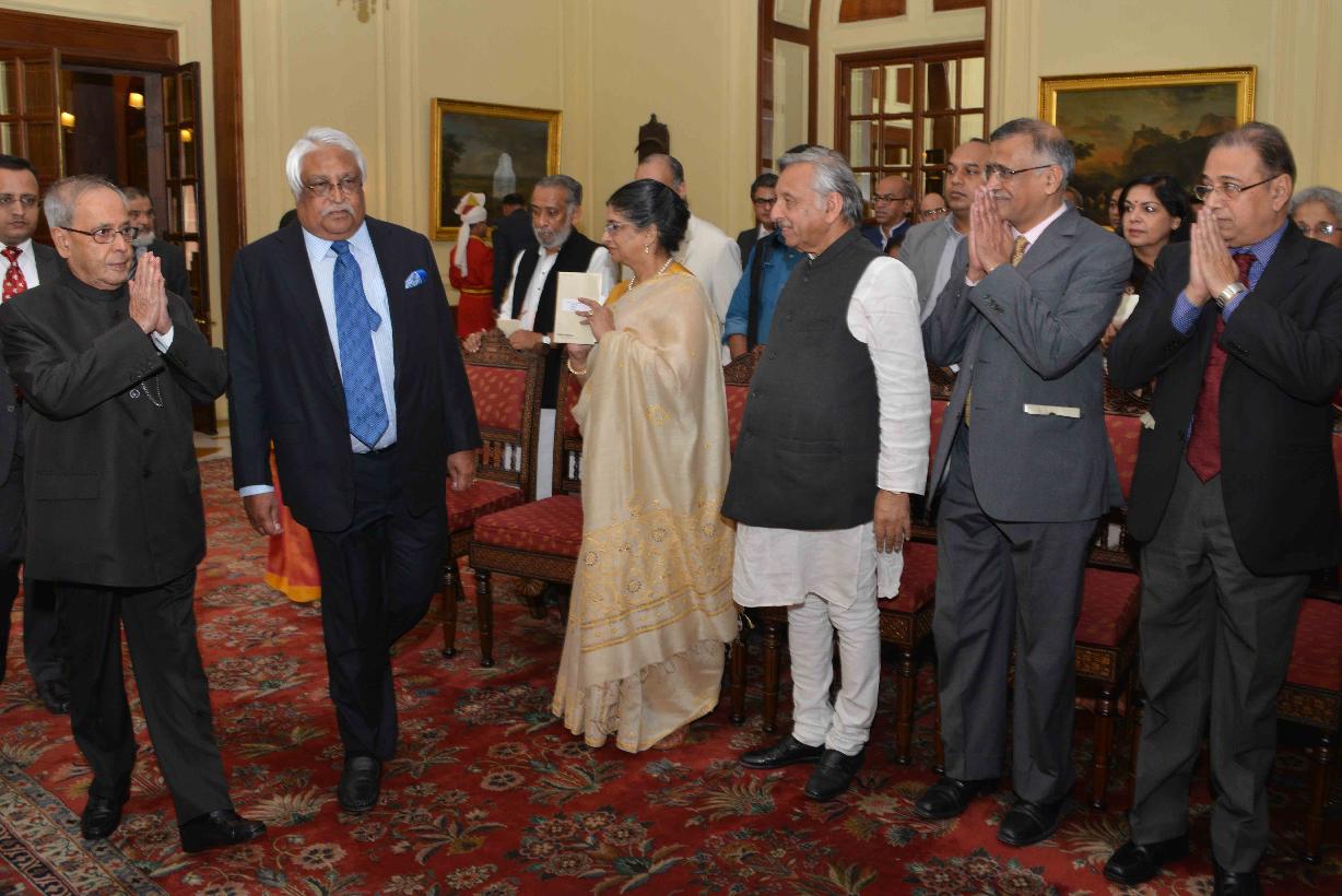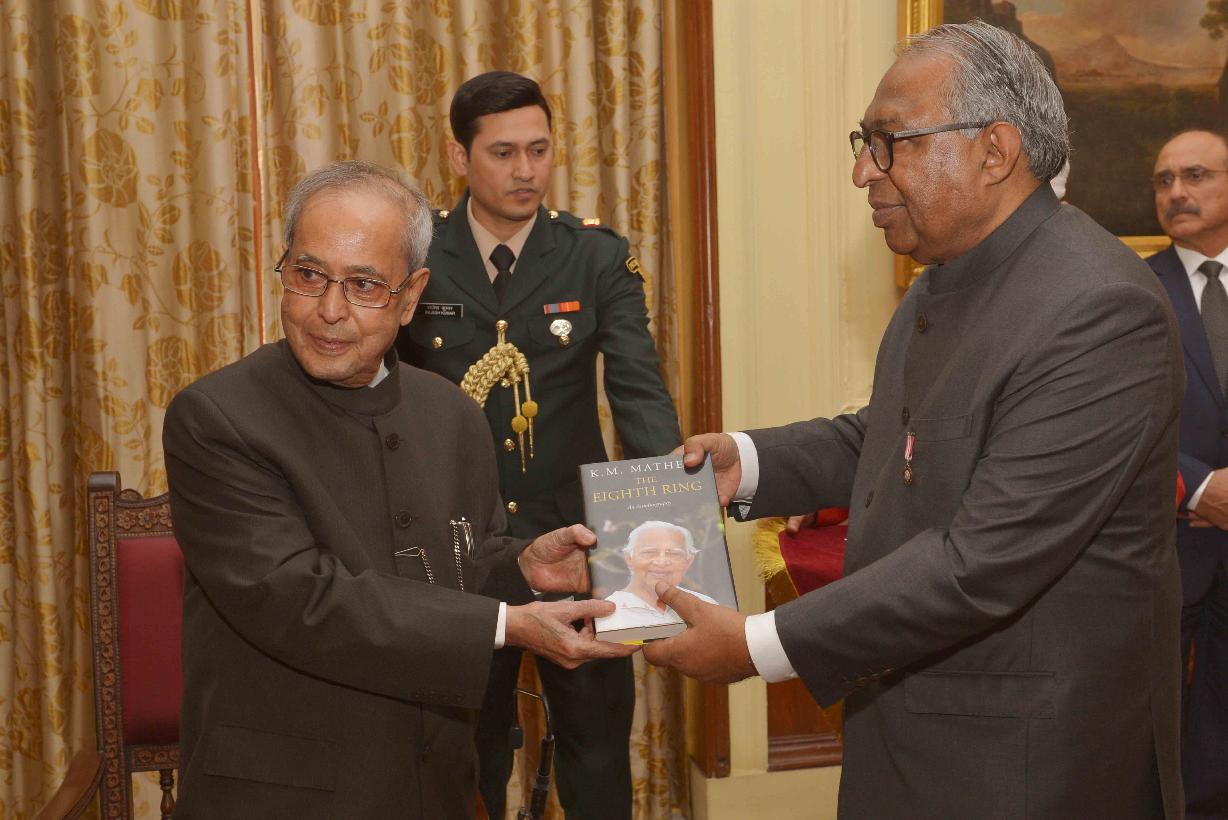 | Caption: | The President of India, Shri Pranab Mukherjee receiving the first Copy of the Book entitled "The Eighth Ring" from Shri Mammen Mathew, Chief Editor, Malayala Manorama, at Rashtrapati Bhavan on November 26, 2015. |