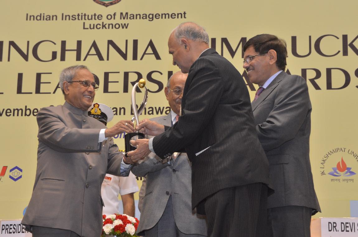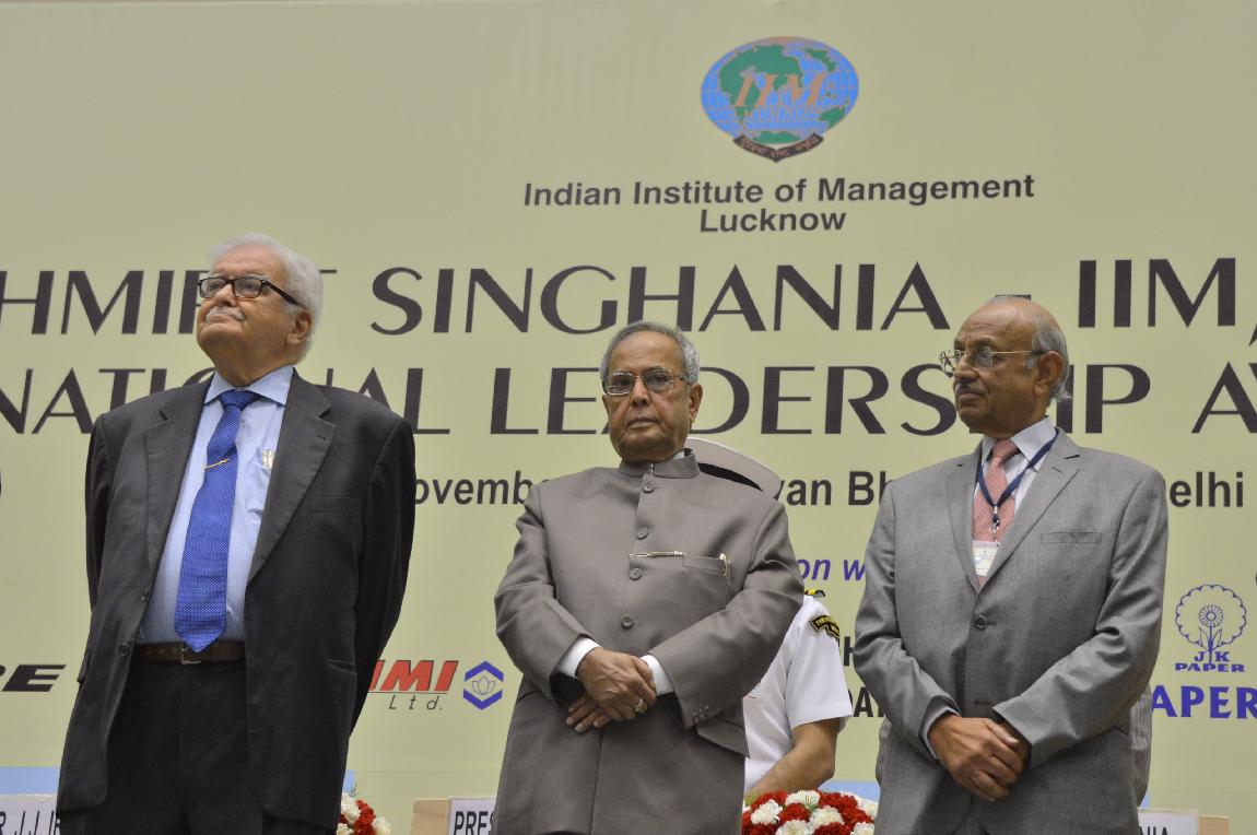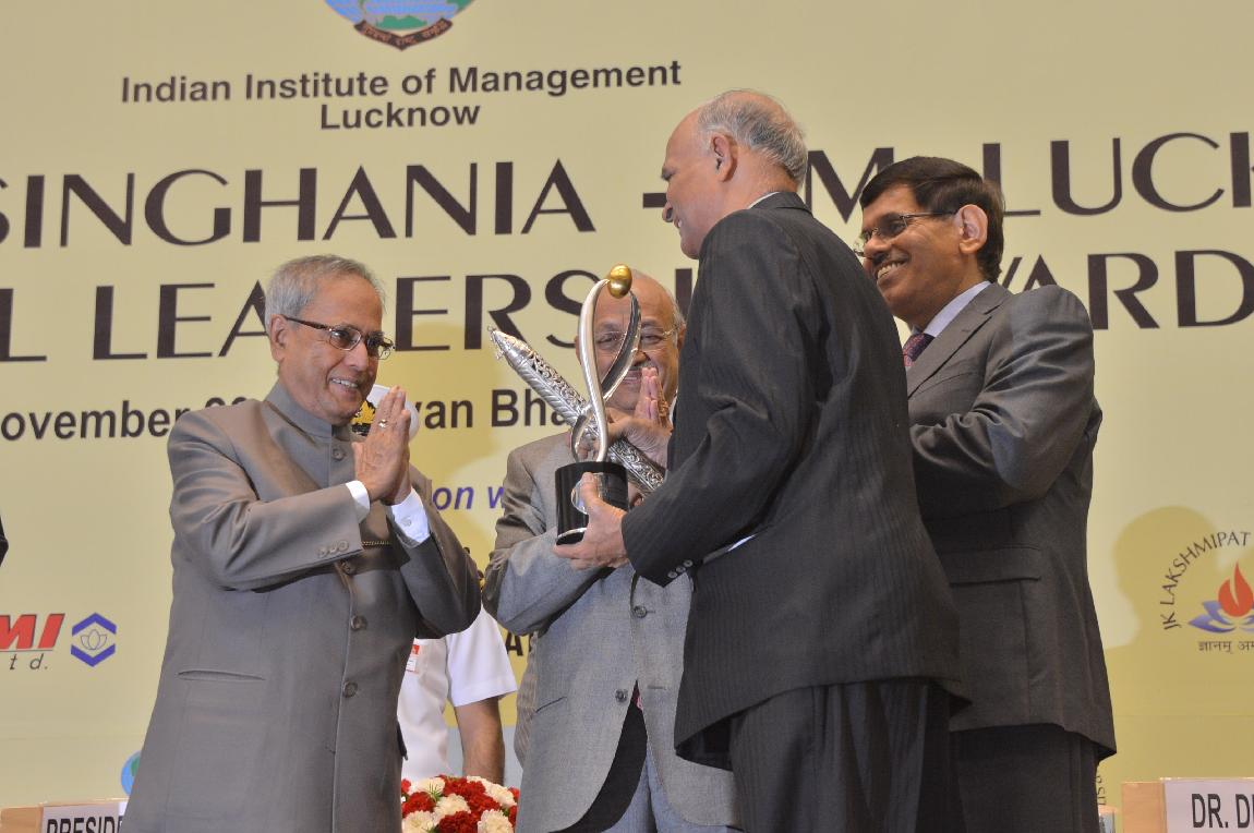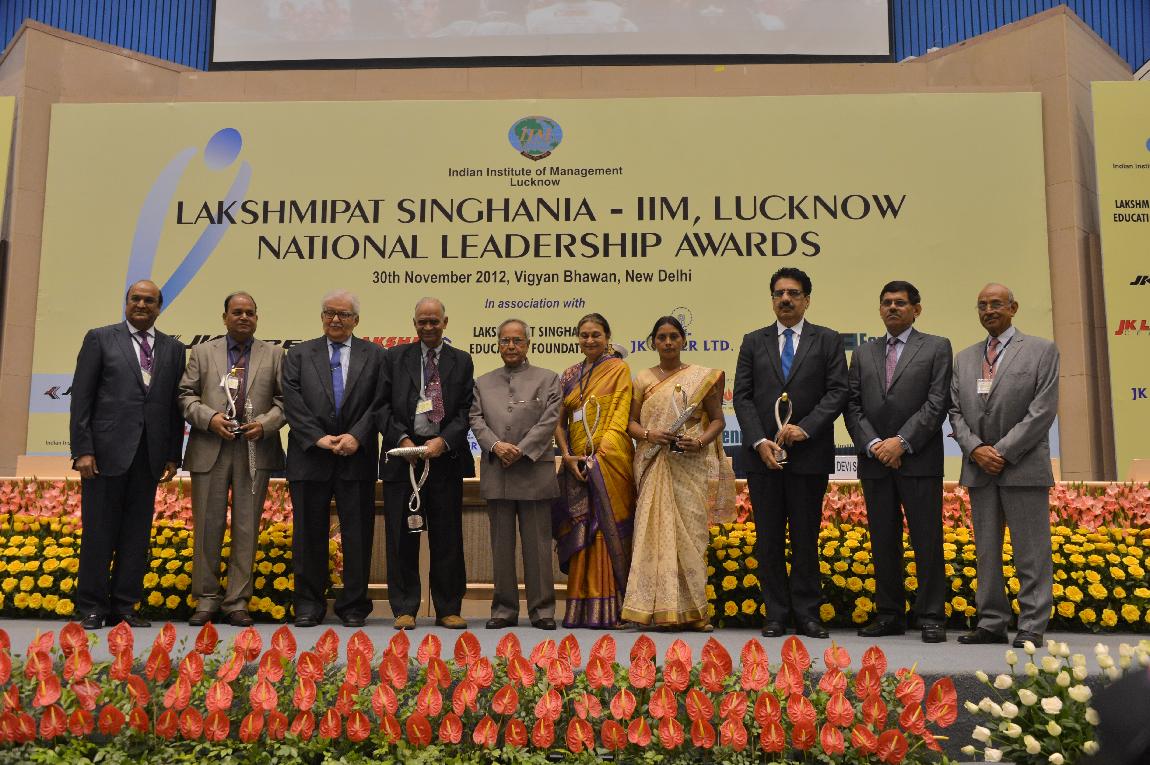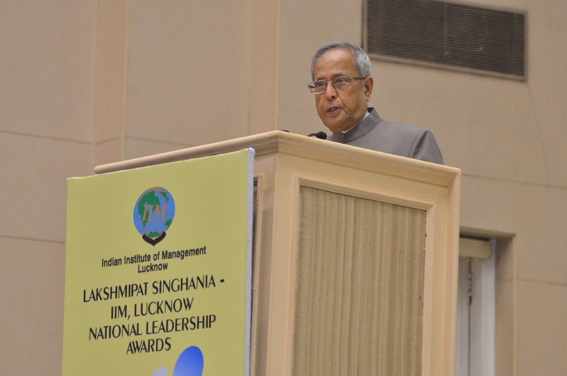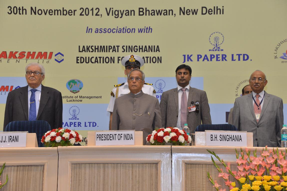| Caption: | The President of India, Shri Pranab Mukherjee at Lakshmipat Singhania-IIM Lucknow National Leadership Awards on November 30, 2012 |