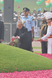 | Caption: | The President of India, Shri Pranab Mukherjee paying floral tributes at the Samadhi of Late Pandit Jawaharlal Nehru to Commemorate his Birth Anniversary, at Shanti Van, in Delhi on November 14, 2015. |
