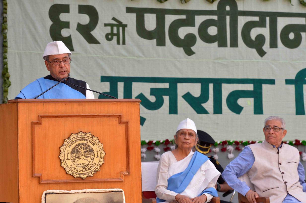 | Caption: | The President of India, Shri Pranab Mukherjee addressing the 62nd Convocation of Gujarat Vidyapith, at Ahmedabad, in Gujarat on December 01, 2015. |