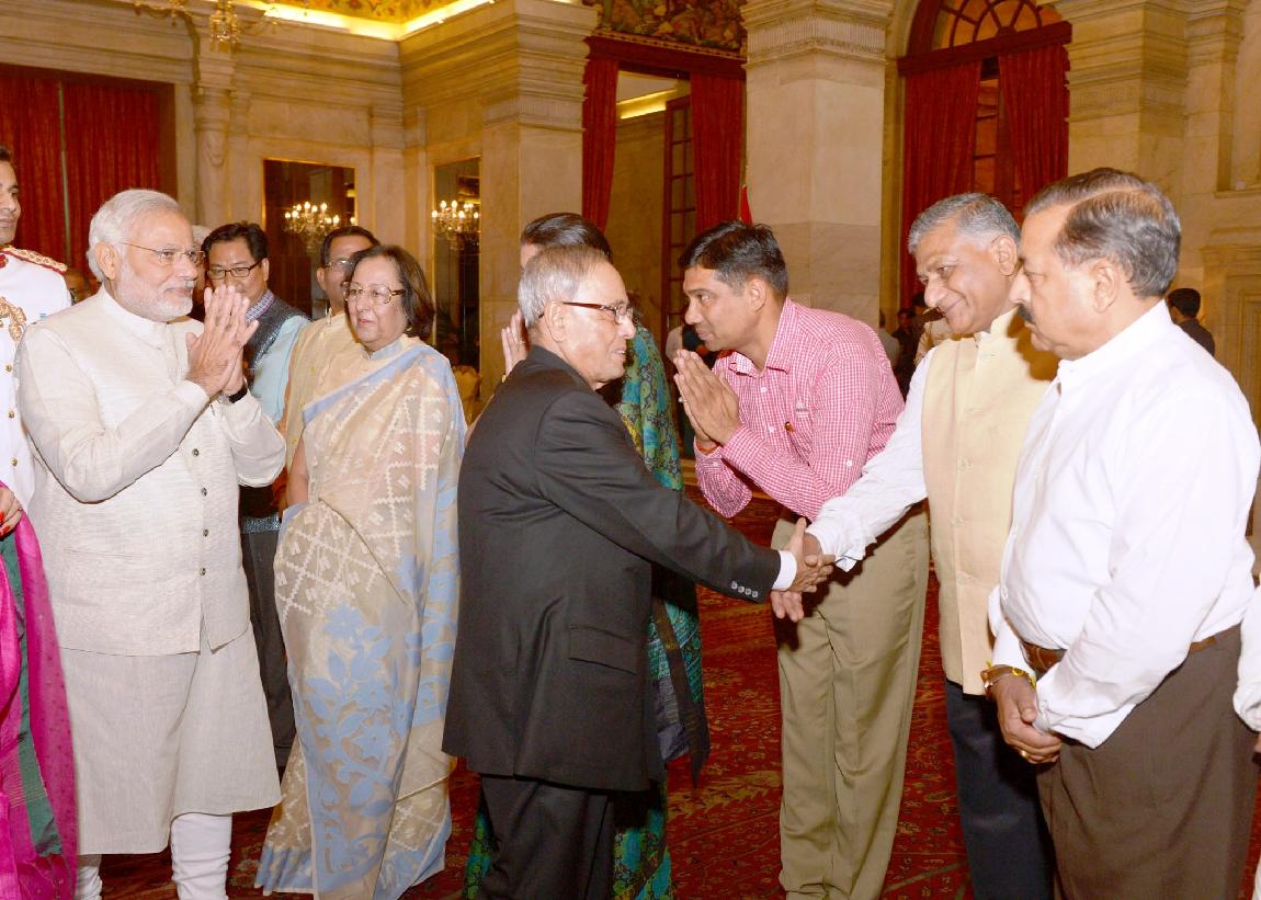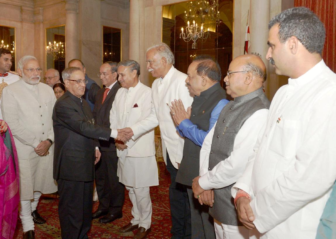 | Caption: | The President of India, Shri Pranab Mukherjee at the Dinner Hosted by the President for the Prime Minister of India, Shri Narendra Damodardas Modi and the Union Council of Ministers at Rashtrapati Bhavan in New Delhi on May 28, 2014 |