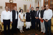 | Caption: | The President of India, Shri Pranab Mukherjee meeting with Prof. Raj Yadav (son of late Shri Shyam Lal Yadav, former Deputy Chairman Rajya Sabha), Founder President, Shyam Lal Yadav Memorial Trust with others, at Rashtrapati Bhavan on July 09, 2016. |