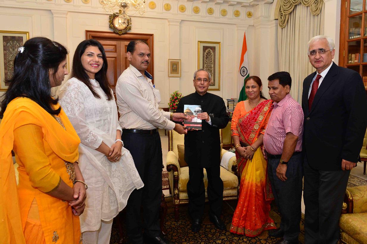 | Caption: | The President of India, Shri Pranab Mukherjee receiving a copy of the book ''Teacher at Heart: Selected Reflections of Dr. Zakir Hussain on University Education System in India'' from Dr. Lokendra Malik, Shri Salman Khurshid, former Union Minister with others, at Rashtrapati Bhavan on July 06, 2016. |