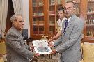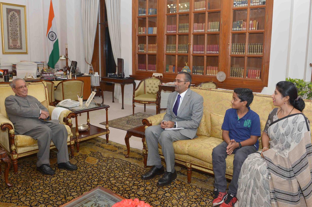 | Caption: | The President of India, Shri Pranab Mukherjee meeting with Shri R. Ravindra, Ambassador of India to Cote d' lvoire, at Rashtrapati Bhavan on July 11, 2016. |