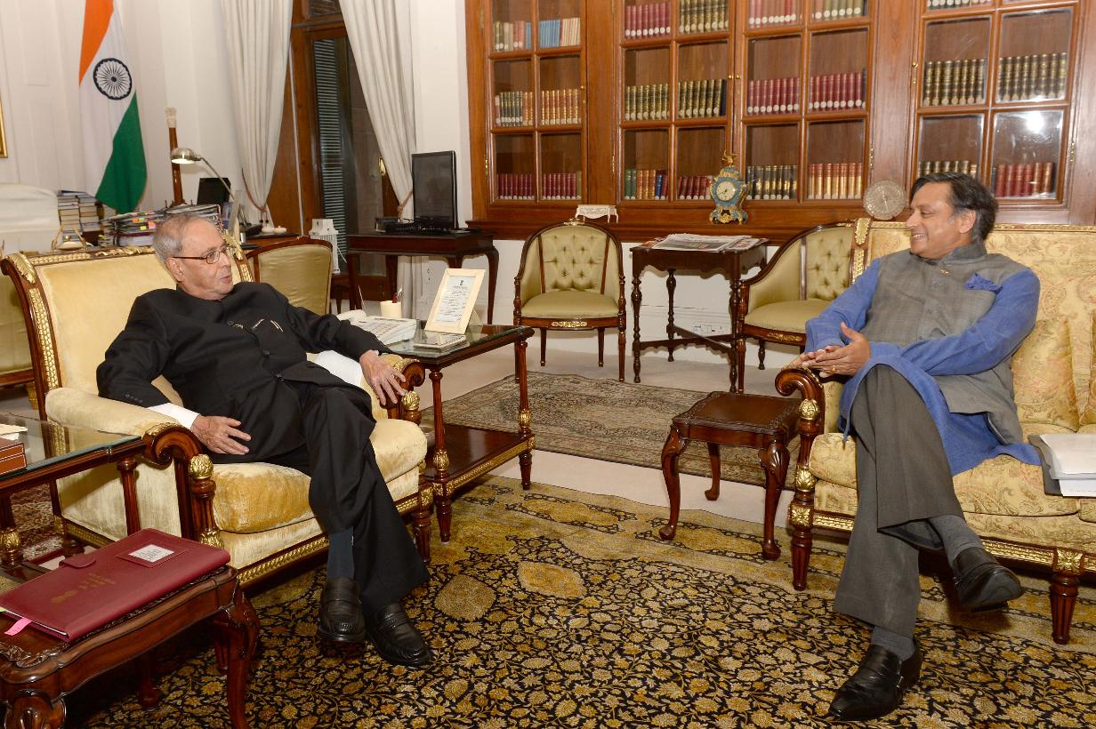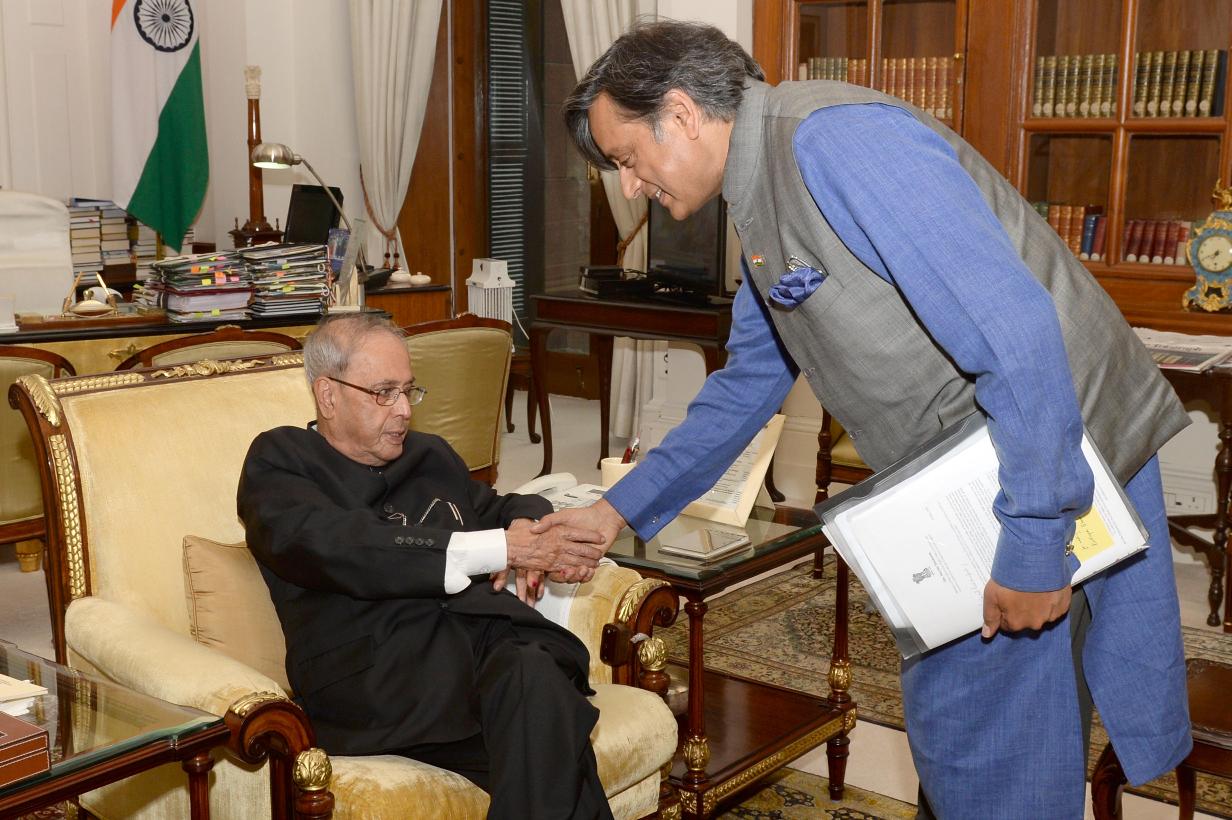 | Caption: | The President of India, Shri Pranab Mukherjee meeting with Dr. Shashi Tharoor, MP (LS), at Rashtrapati Bhavan on June 25, 2016. |