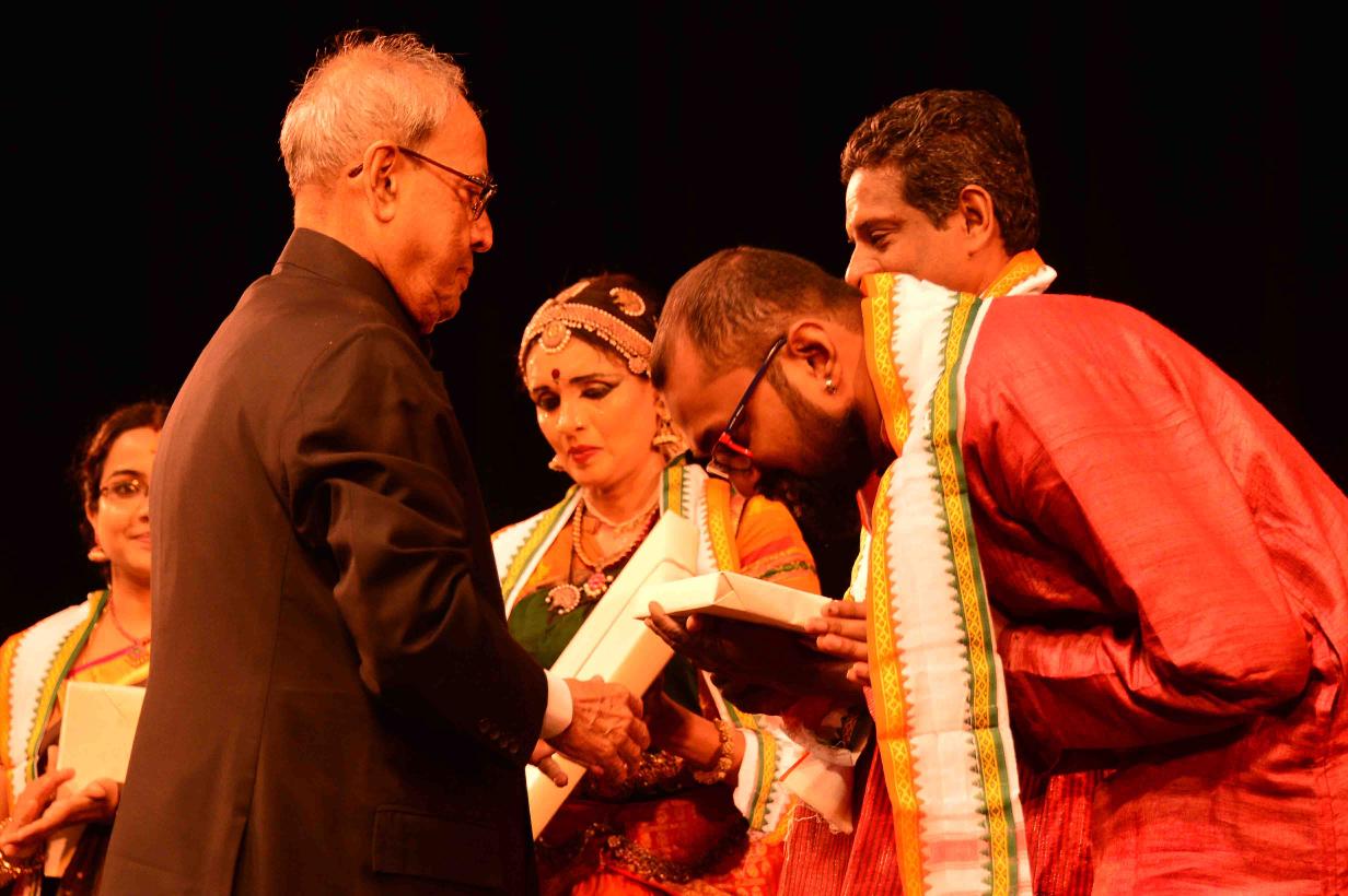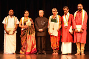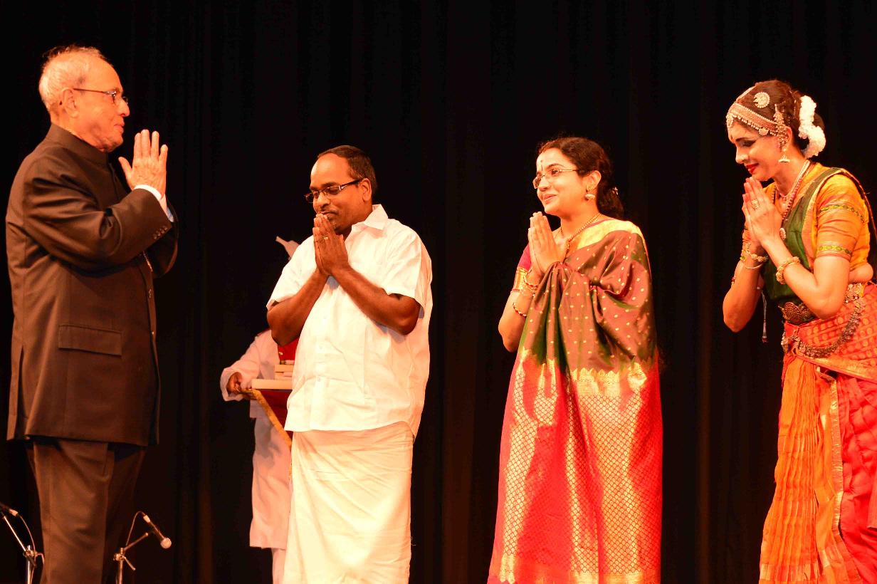 | Caption: | The President of India, Shri Pranab Mukherjee felicitating artists after witnessing a Bharatnatyam performance by Smt. Priyadarshini Govind, at Rashtrapati Bhavan Auditorium on June 25, 2016. |