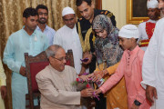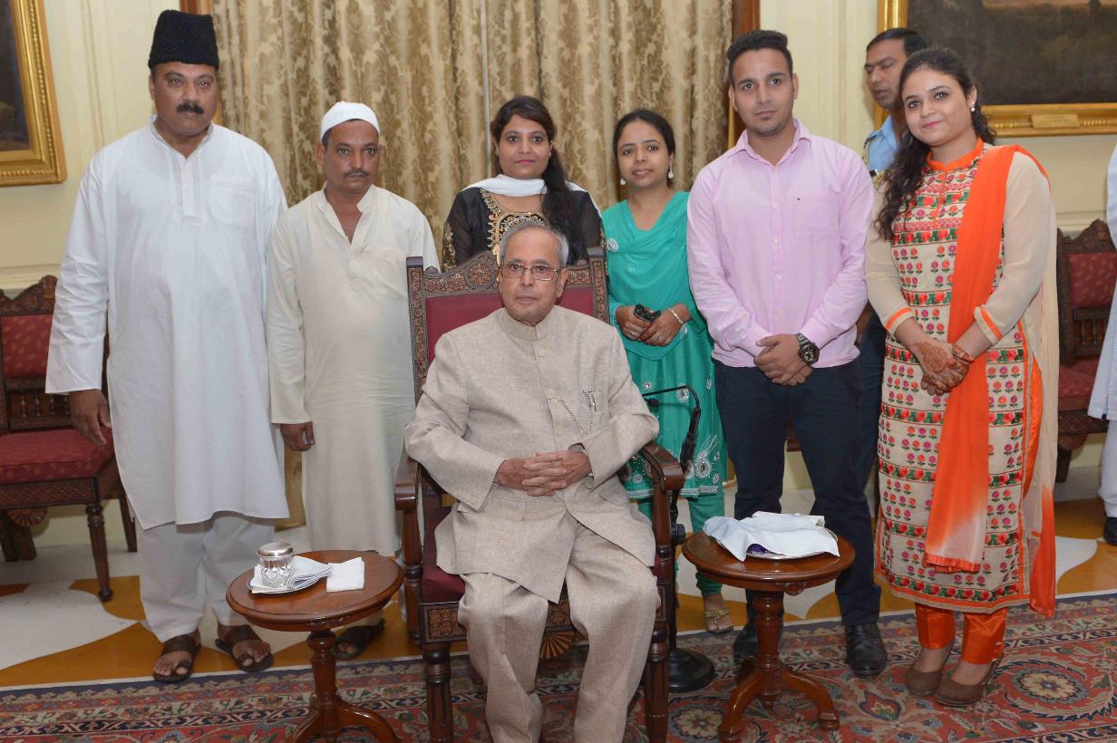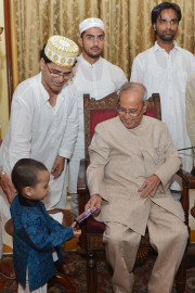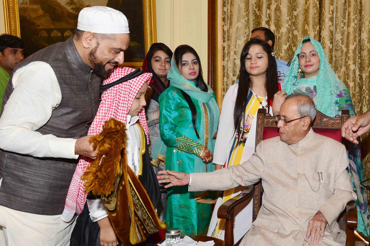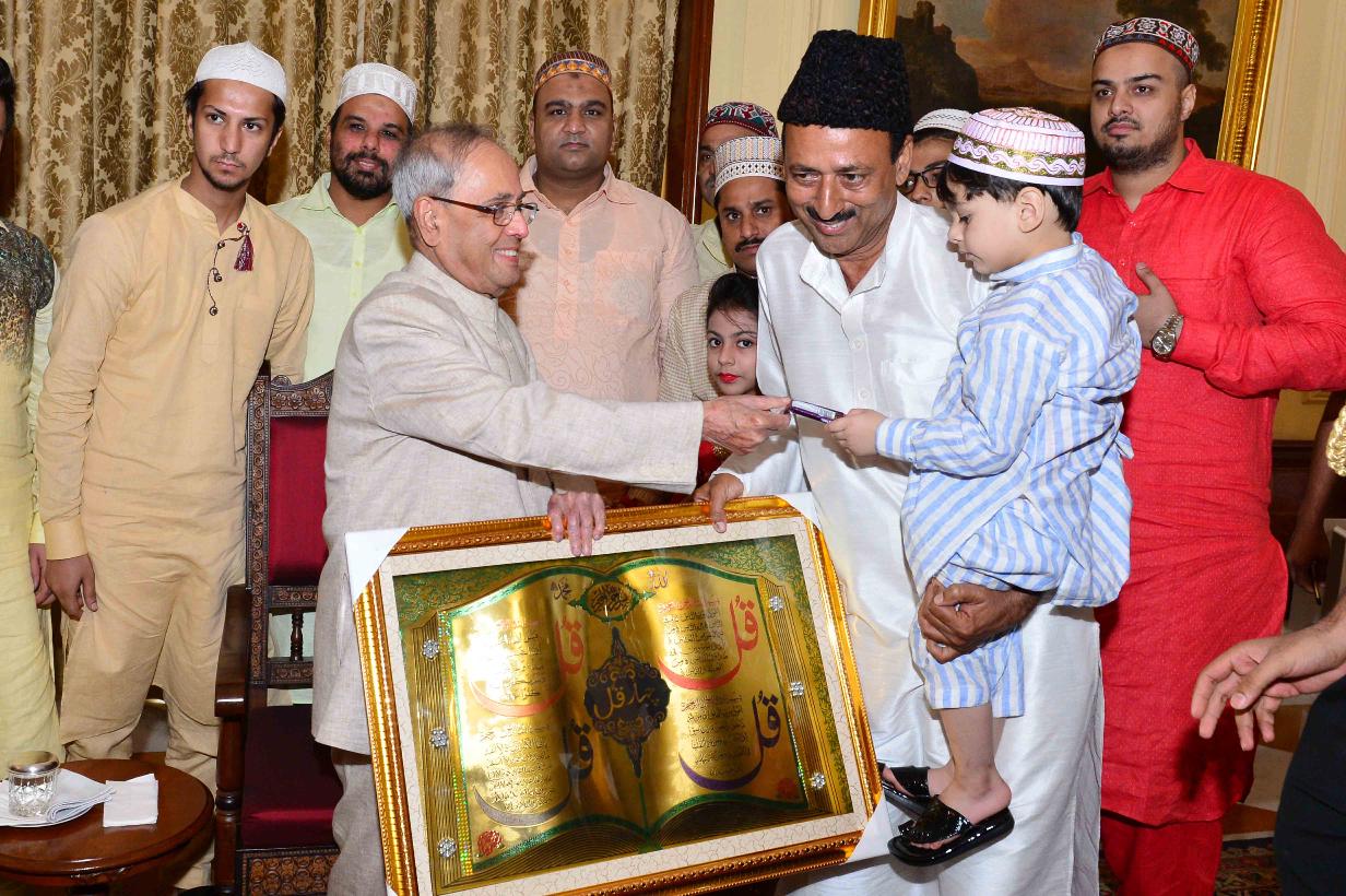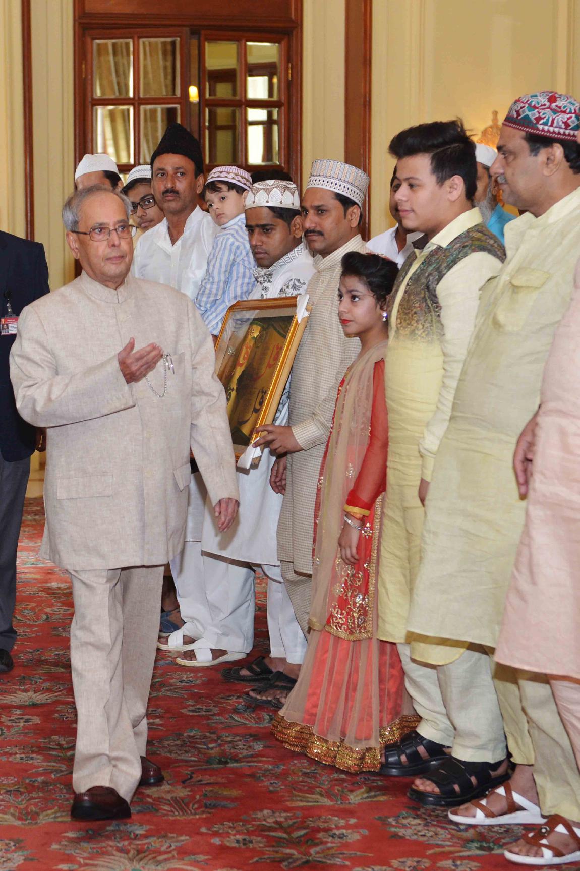 | Caption: | The President of India, Shri Pranab Mukherjee receiving Idu'l Fitr (Eid) Greetings from various groups, at Rashtrapati Bhavan on July 07, 2016. |