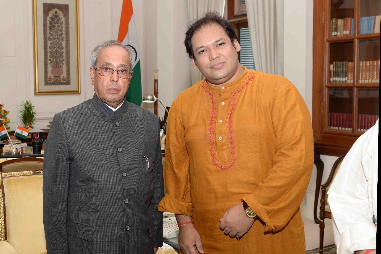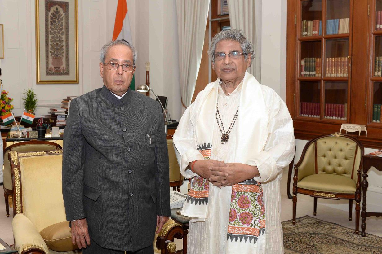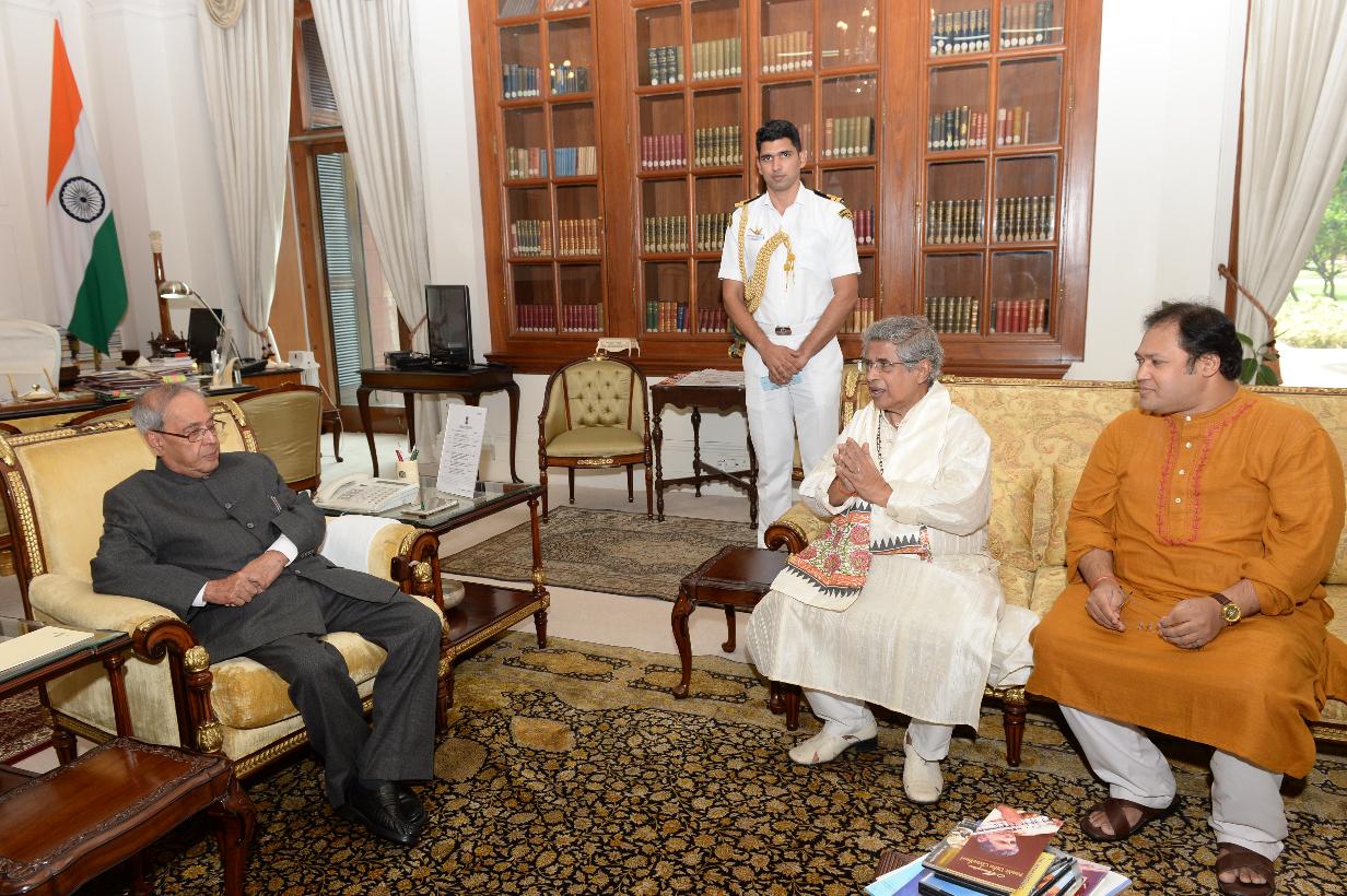 | Caption: | The President of India, Shri Pranab Mukherjee meeting with Pandit Devabrata (Debu) Chaudhuri, at Rashtrapati Bhavan on July 21, 2016. |