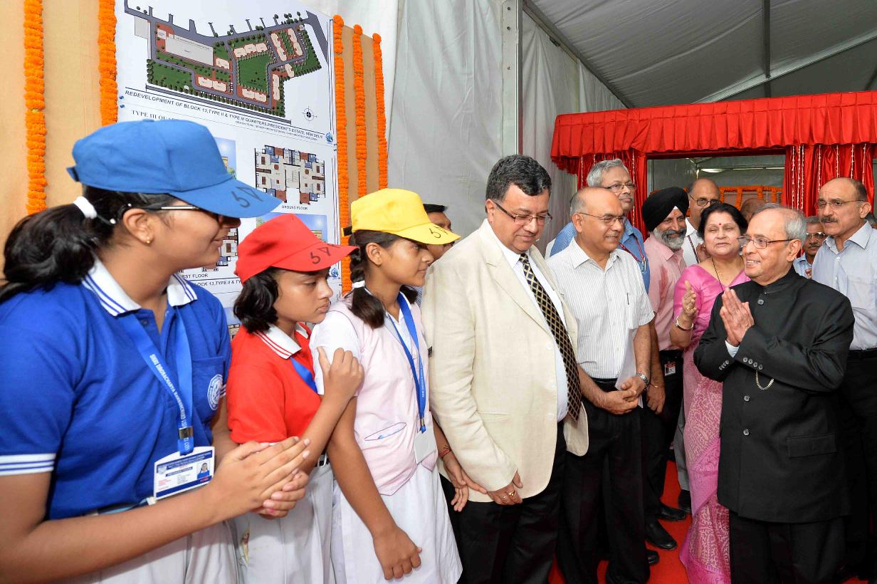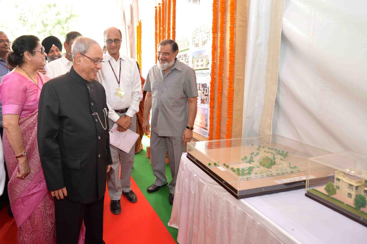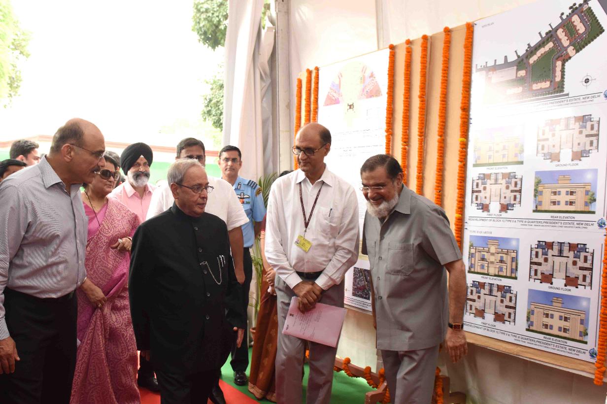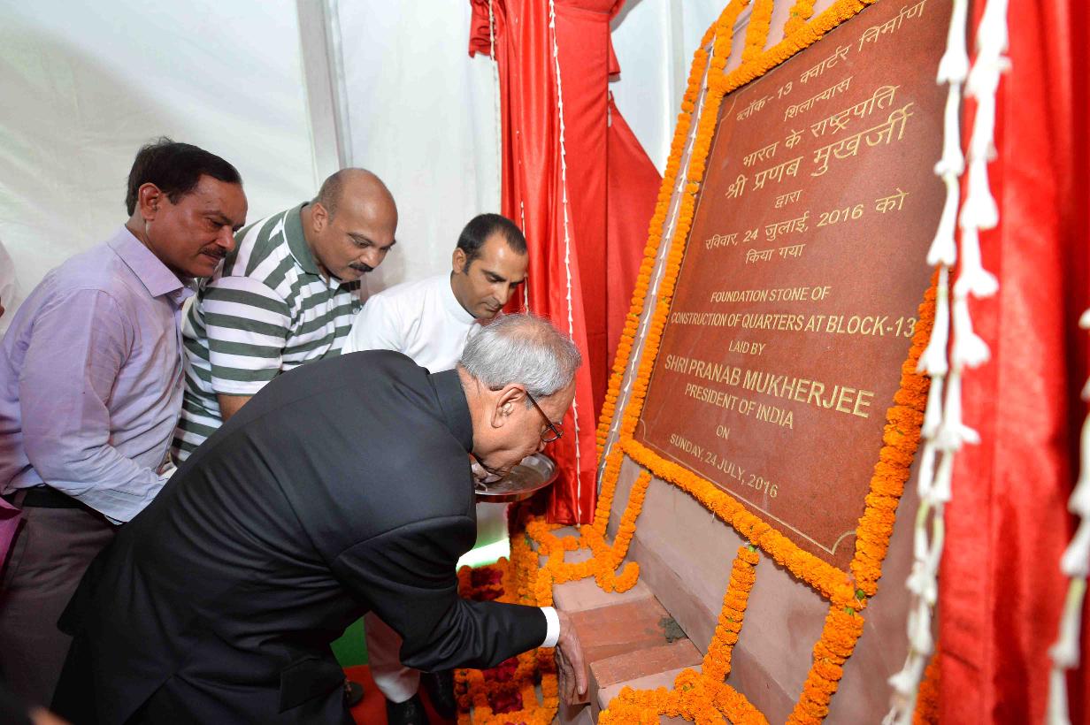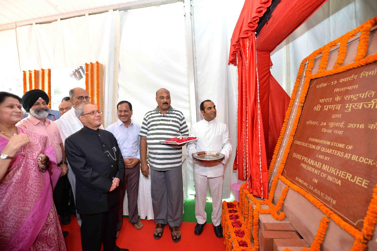 | Caption: | The President of India, Shri Pranab Mukherjee laying the Foundation Stone for Construction of Type - II & Type - III Residential Units at Block No. 13, Schedule-B, President s Estate on July 24, 2016. |