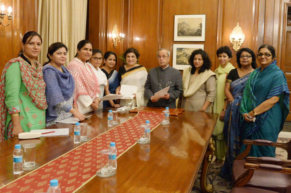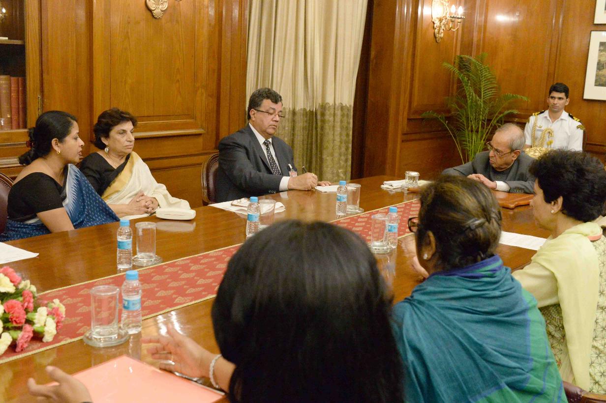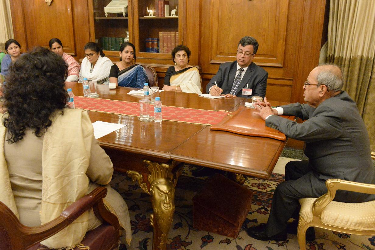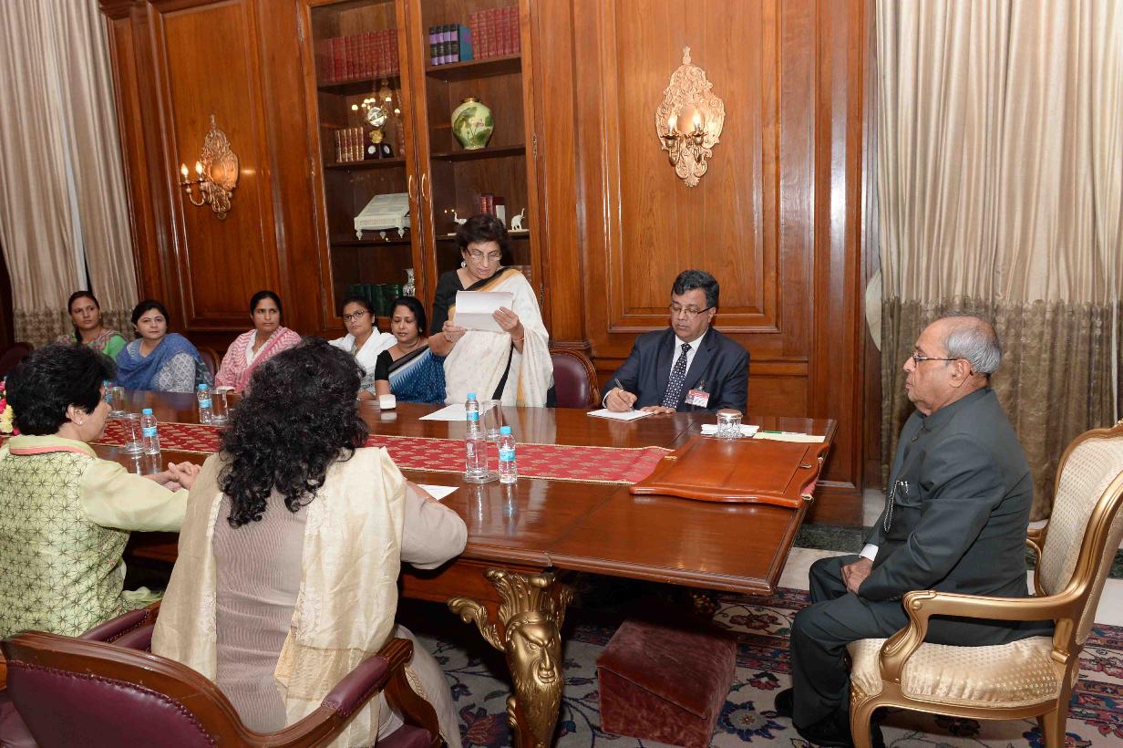 | Caption: | The President of India, Shri Pranab Mukherjee meeting with Smt. Shobha Oza, President, All India Mahila Congress along with a delegation of Women Congress MPs (Lok Sabha & Rajya Sabha) and leaders of the Congress Party, at Rashtrapati Bhavan on July 27, 2016. |