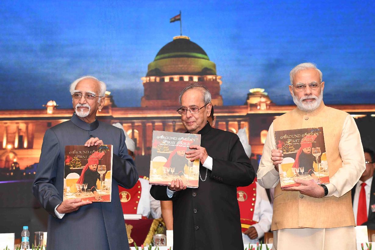| Caption: | The Vice President of India, Shri M. Hamid Ansari releasing the book titled "Around India's First Table : Dining and Entertaining at Rashtrapati Bhavan" and presented first copy to the President of India, Shri Pranab Mukherjee, at Rashtrapati Bhavan on July 25, 2016. |