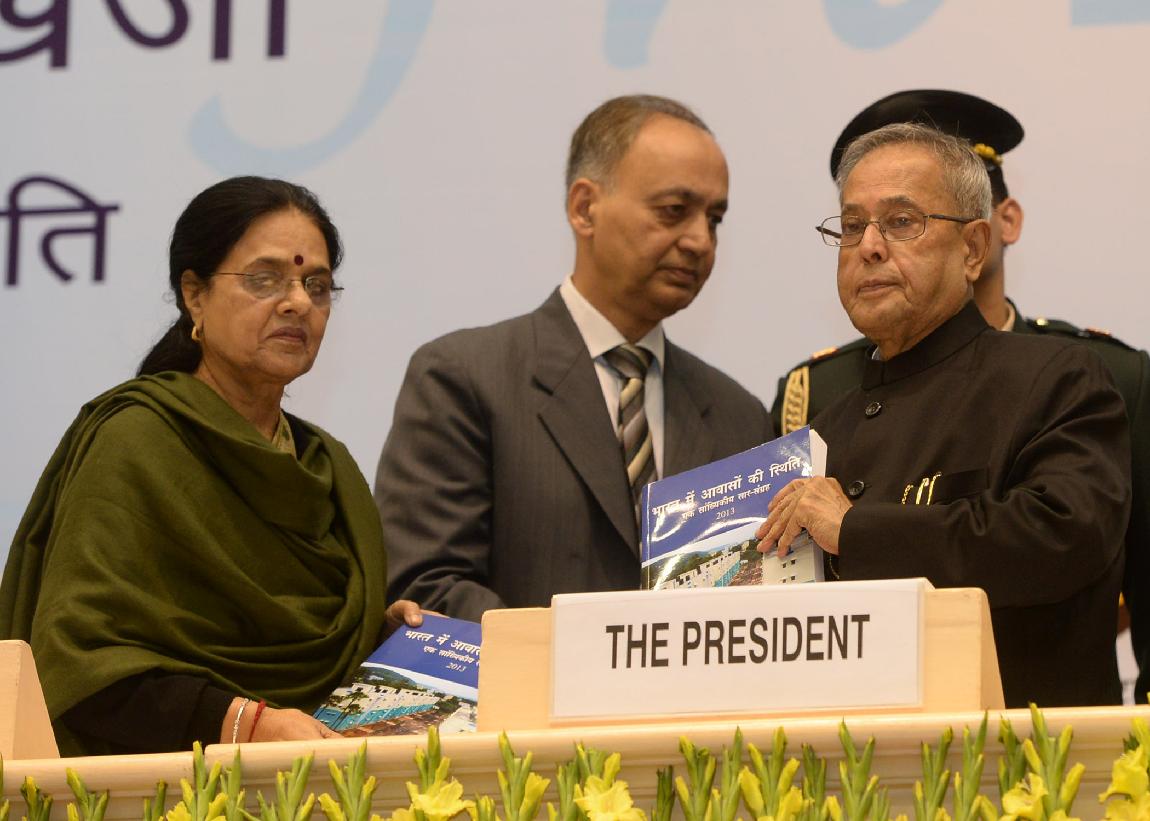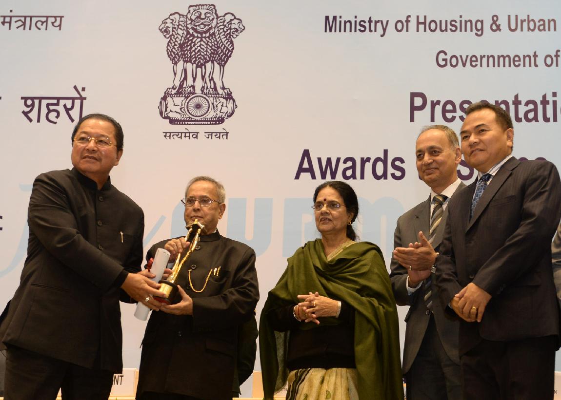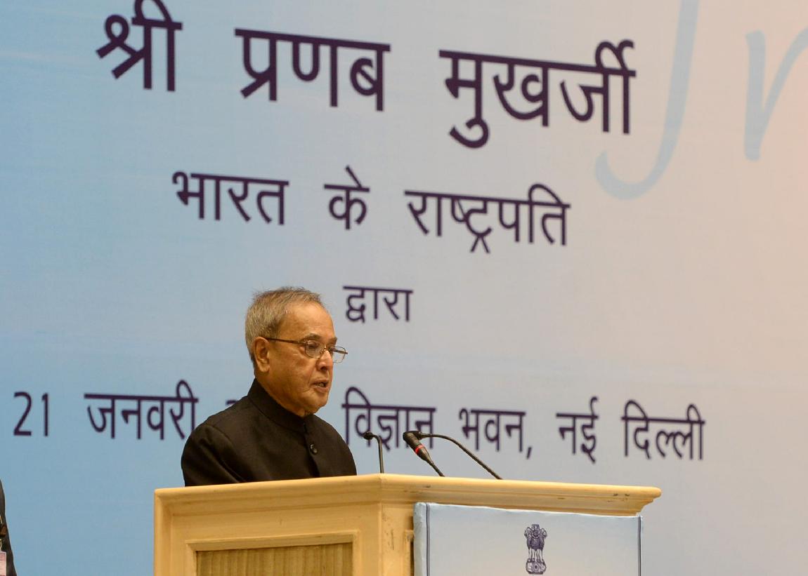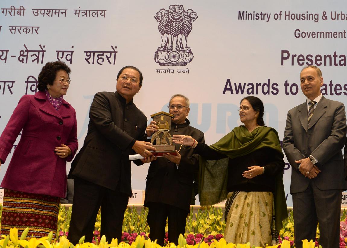 | Caption: | The President of India, Shri Pranab Mukherjee presenting the Awards Instituted by the Ministry of Housing and Urban Poverty Alleviation for Effective Implementation of Jawaharlal Nehru National Urban Renewal Mission (JNNURM) at Vigyan Bhavan in New Delhi on Jan 21, 2014 |