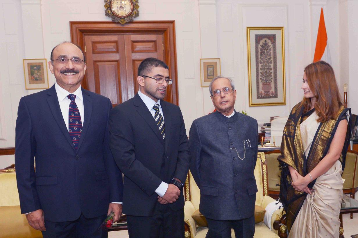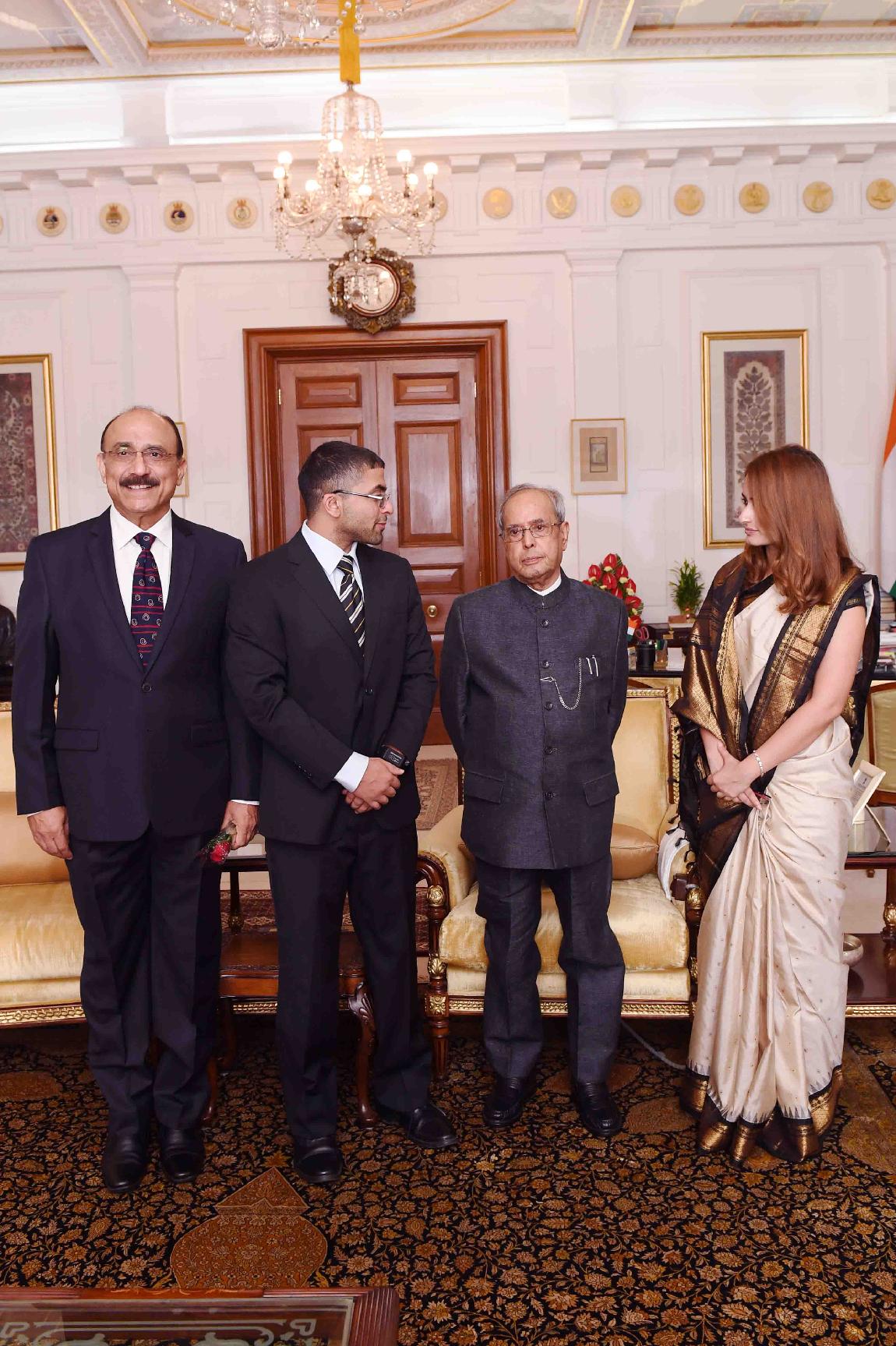 | Caption: | The President of India, Shri Pranab Mukherjee meeting with Dr. Thomas Mathew, ASP alongwith his daughter Ms. Divya Thomas and son Shri George Thomas, at Rashtrapati Bhavan on July 30, 2016. |