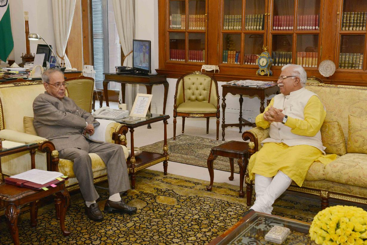 | Caption: | The Chief Minister of Haryana, Shri Manohar Lal calling on the President of India, Shri Pranab Mukherjee, at Rashtrapati Bhavan on June 09, 2016. |