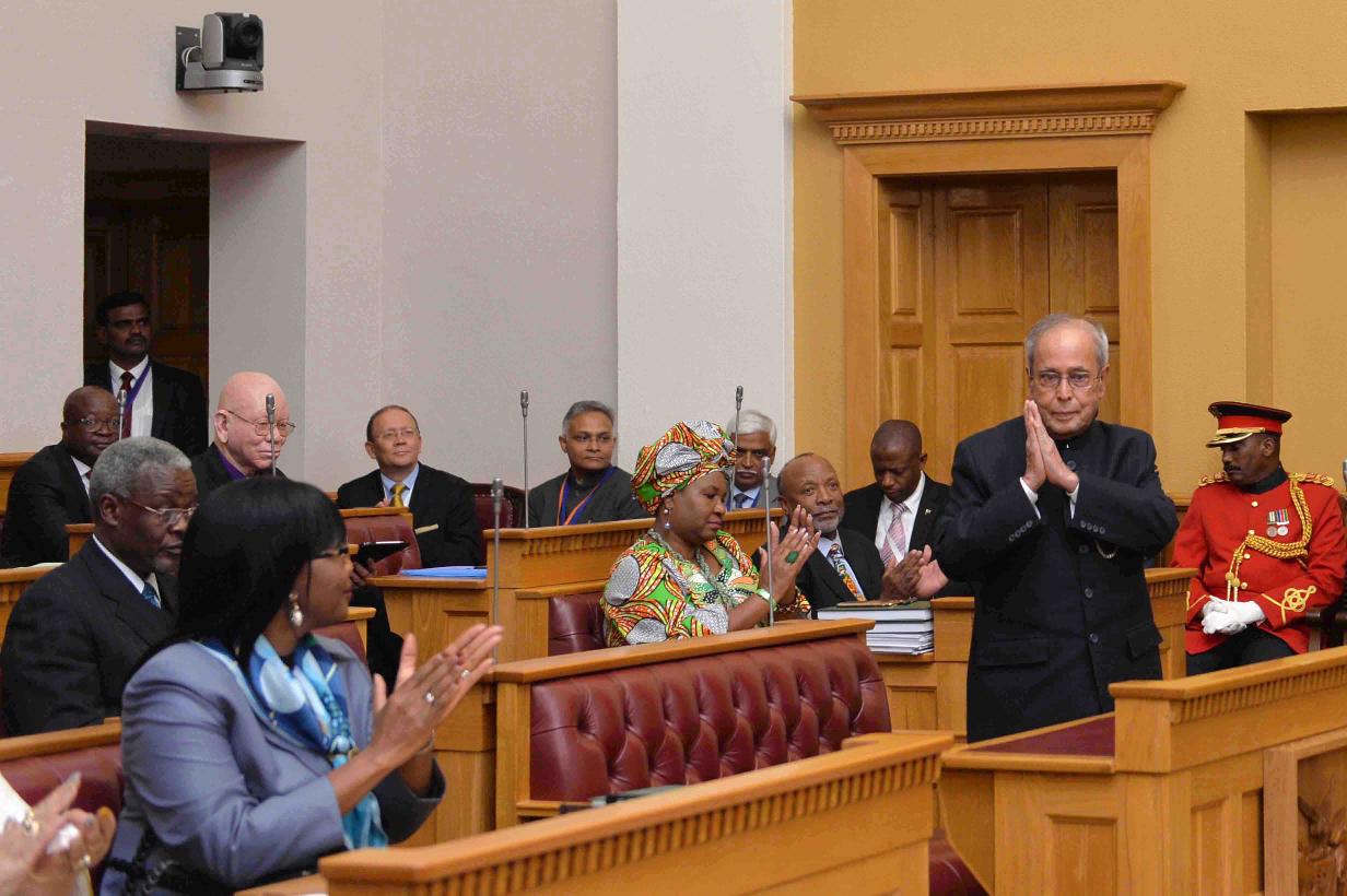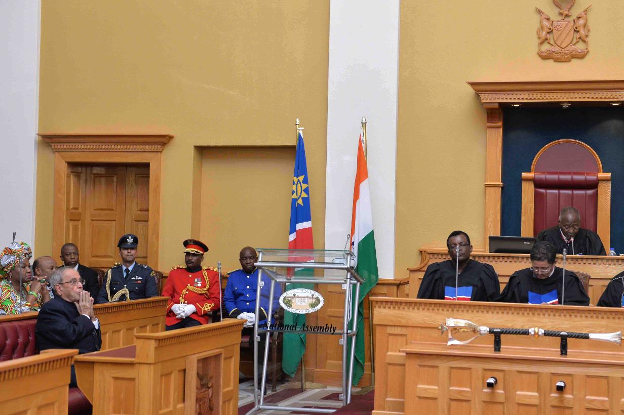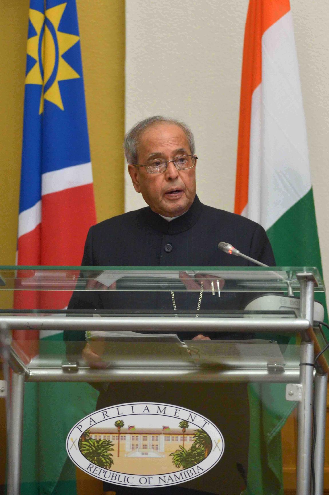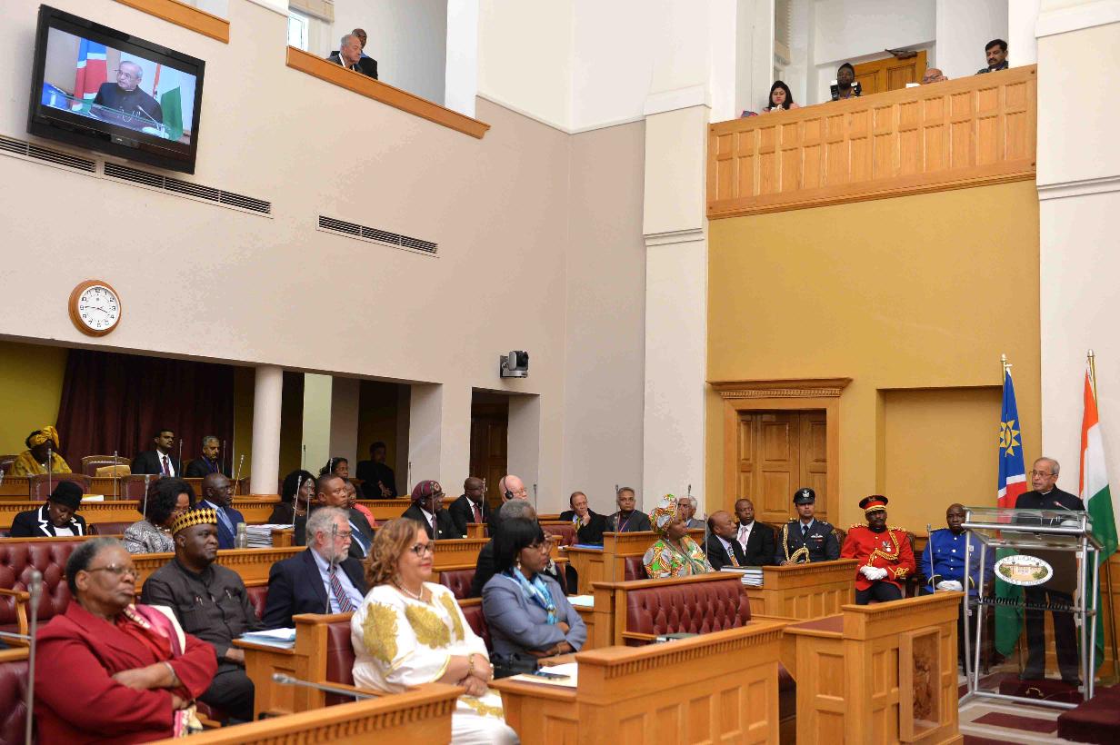 | Caption: | The President of India, Shri Pranab Mukherjee addressing the Members of Parliament of the Republic of Namibia, in Windhoek on June 16, 2016. |