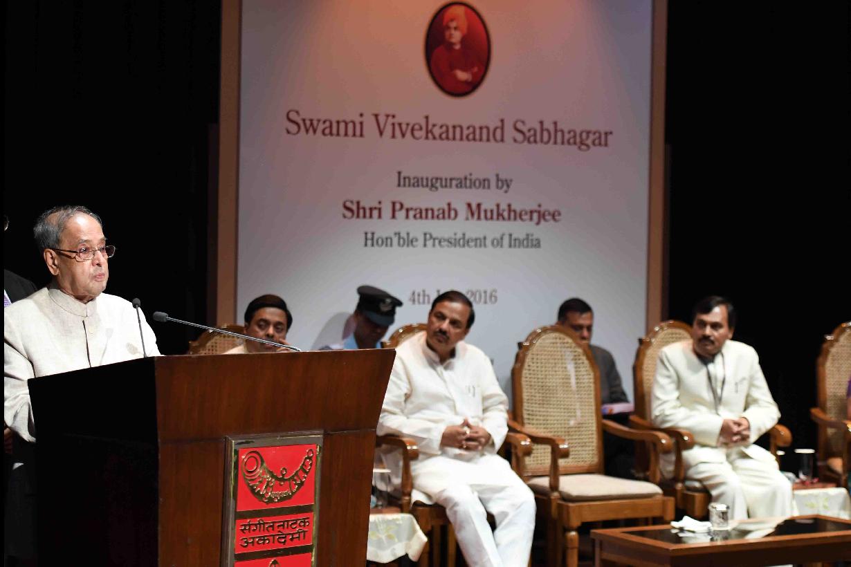 | Caption: | The President of India, Shri Pranab Mukherjee at the inauguration of the Swami Vivekanand Sabhagar, at Kathak Kendra of Sangeet Natak Akademi, in New Delhi on July 04, 2016. |