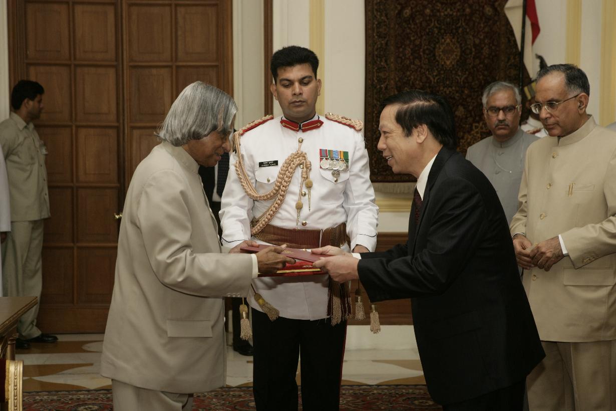 | Caption: | The Ambassador-Designate of Socialist Republic of Vietnam to India, HE Mr Vu Quang Diem presenting his credential to the President of India, Dr A P J Abdul Kalam at the Yellow Drawing Room of Rashtrapati Bhavan in New Delhi on Sep 12, 2006 |