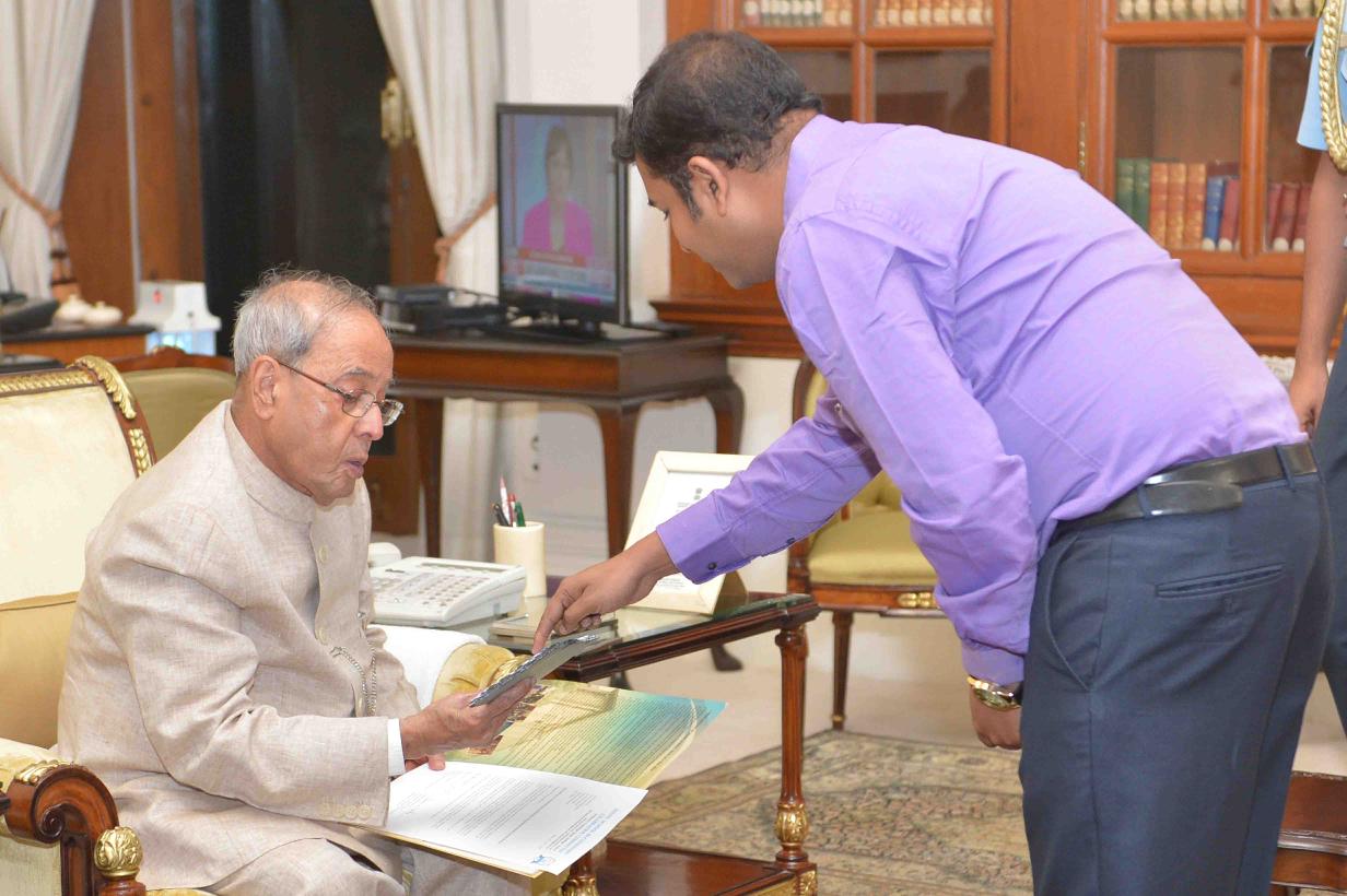| Caption: | The President of India, Shri Pranab Mukherjee meeting with Dr. Siddharth Chatterjee, at Rashtrapati Bhavan on July 04, 2016. |