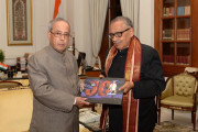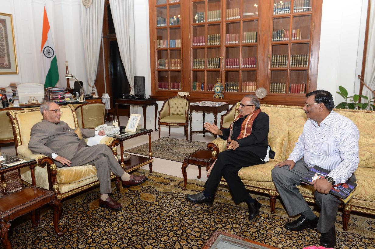 | Caption: | The President of India, Shri Pranab Mukherjee meeting with Shri Gautam Lahiri, Editorial Consultant and Shri Jagdeesh Chandra, Head of ETV Network, at Rashtrapati Bhavan on July 08, 2016. |