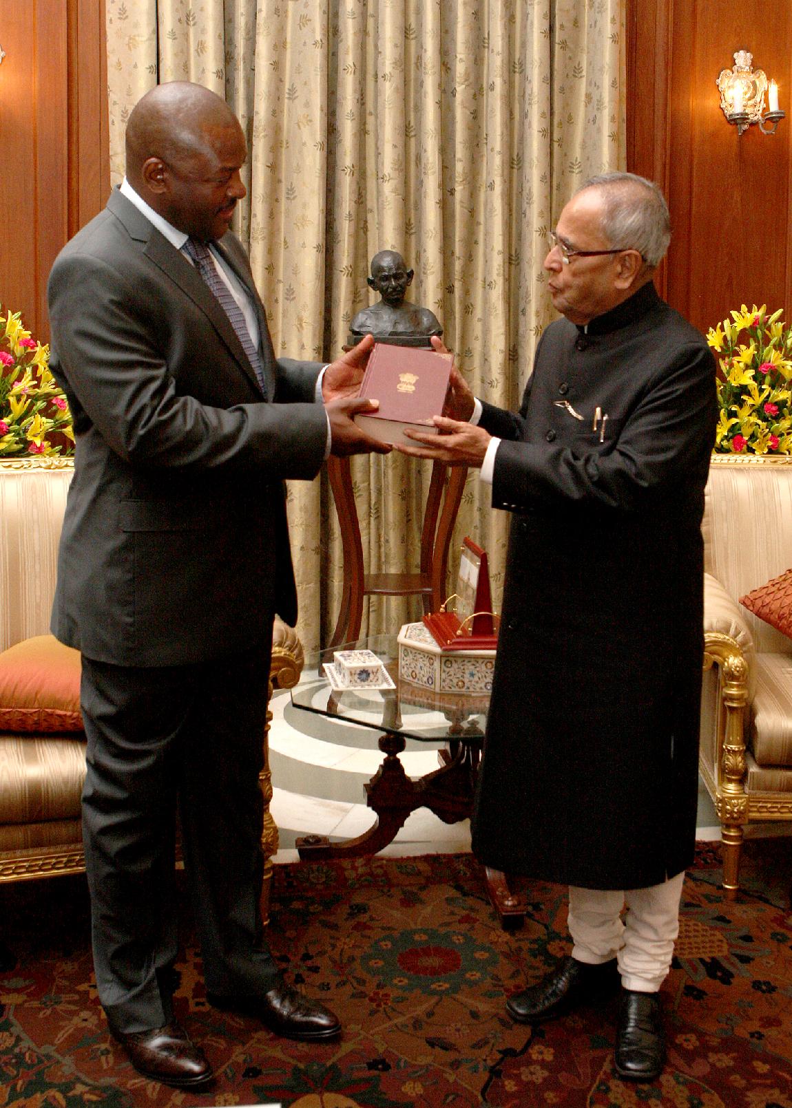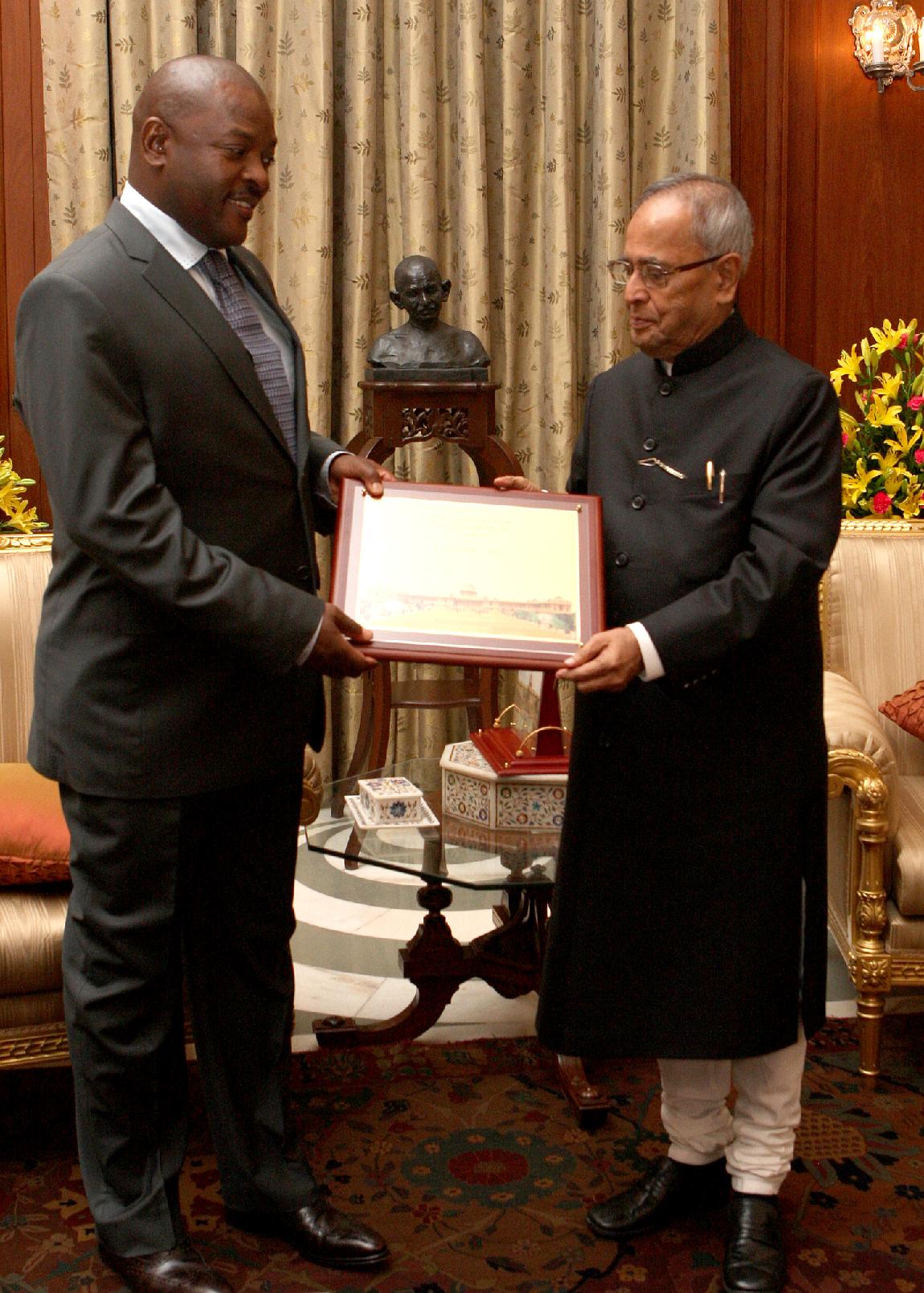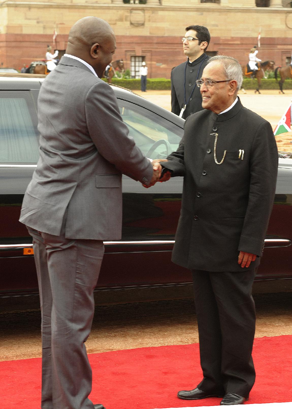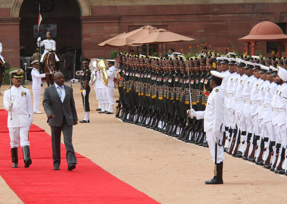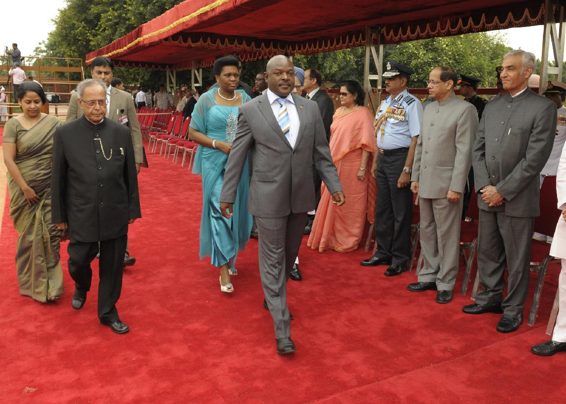 | Caption: | The President of India, Shri Pranab Mukherjee receives HE Mr Pierre Nkurunziza, President of The Republic of Burundi during his Ceremonial Reception at Rashtrapati Bhavan on September 18, 2012 |