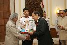| Caption: | The Ambassador-Designate of Republic of Uzbekistan to India, HE Mr Saydakmal Sayadakhmedovitch Saydaminov presenting his credential to the President of India, Dr A P J Abdul Kalam at the Yellow Drawing Room of Rashtrapati Bhavan in New Delhi on Sep 12, 2006 |