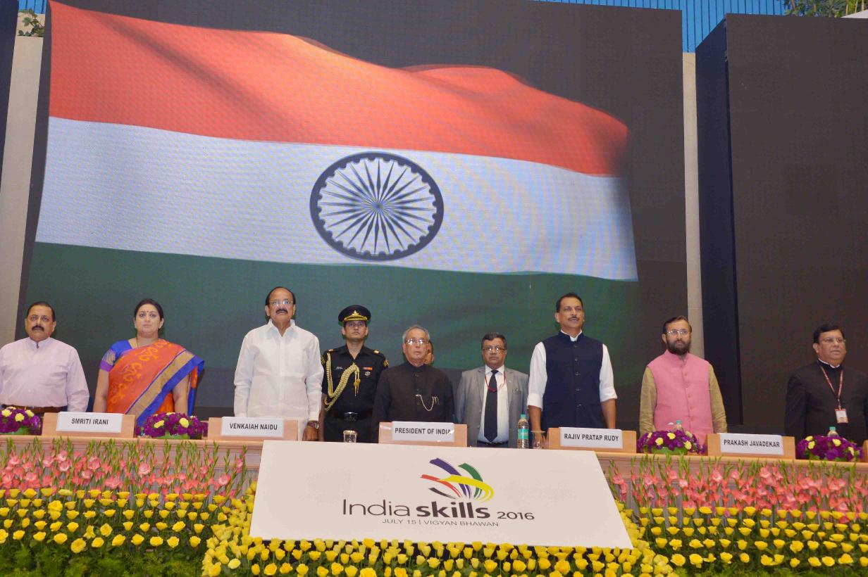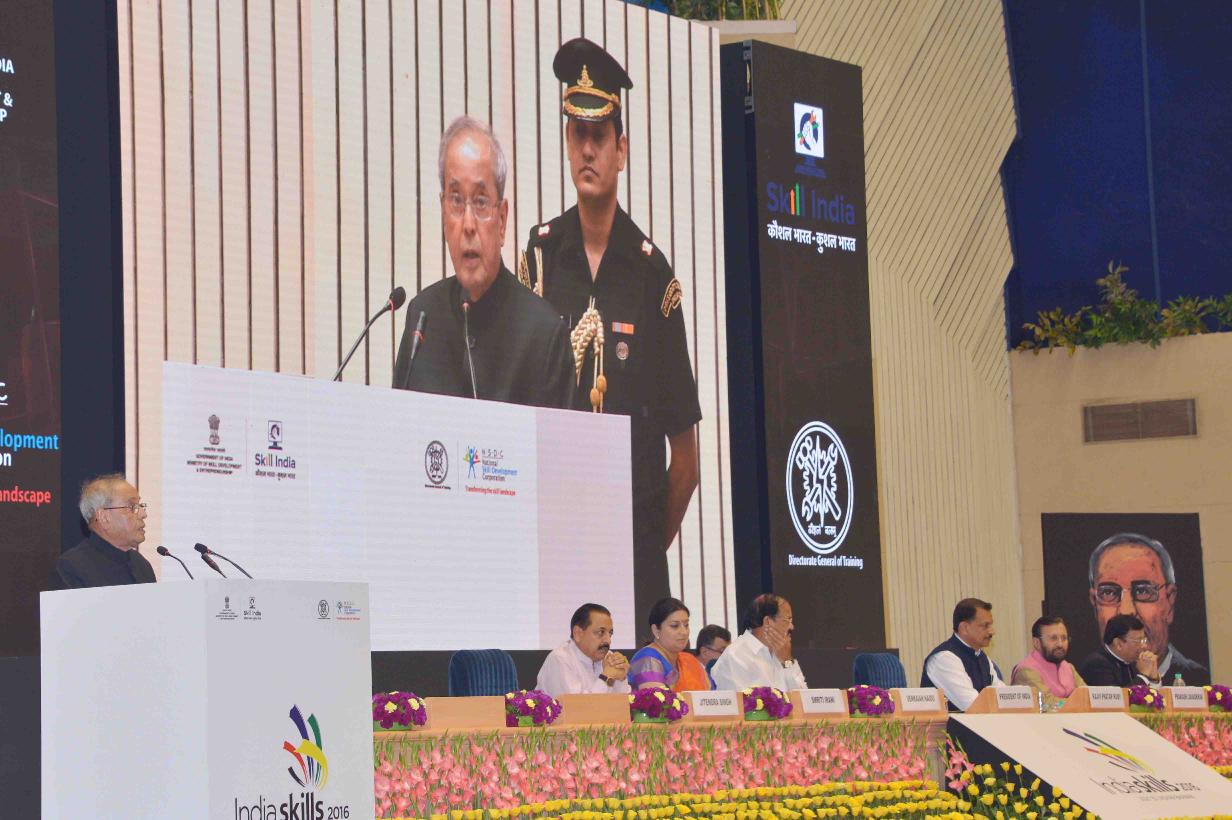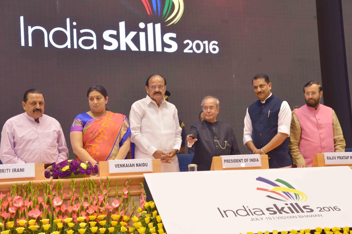 | Caption: | The President of India, Shri Pranab Mukherjee inaugurating the first edition of ''India Skills-2016'' and launching the International Skill Centre, a PMKVY 2.0, a Labour Market Information System and Skills Online, on the occasion of World Youth Skills Day, in New Delhi on July 15, 2016. |