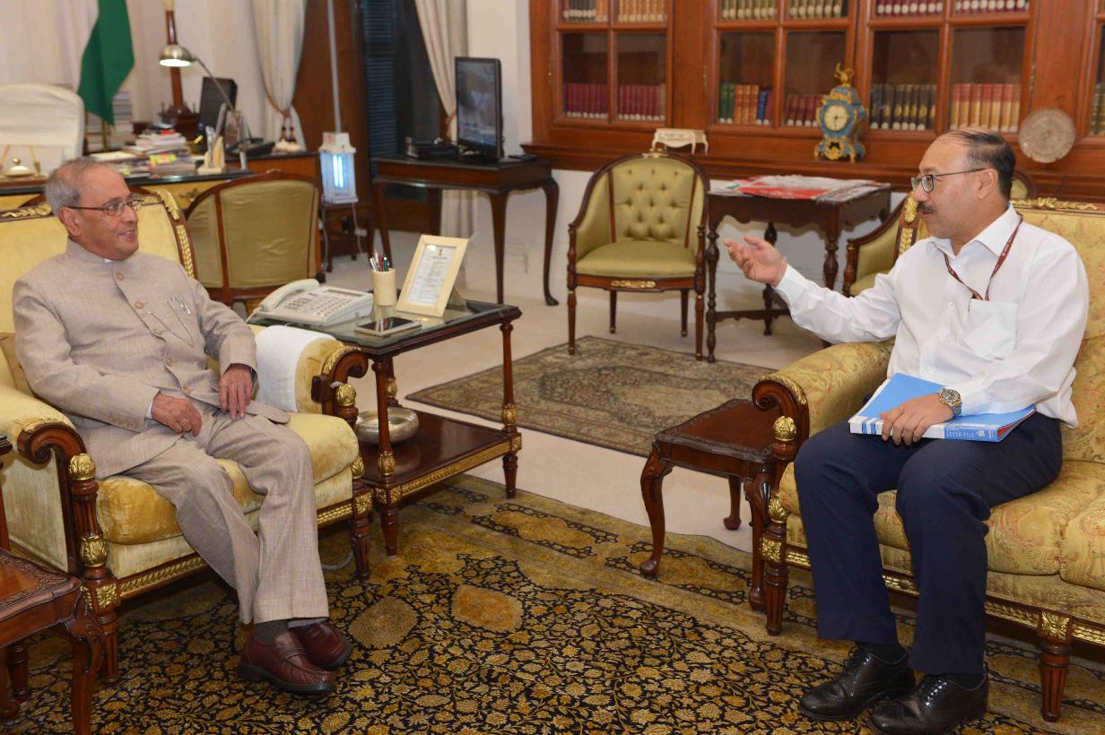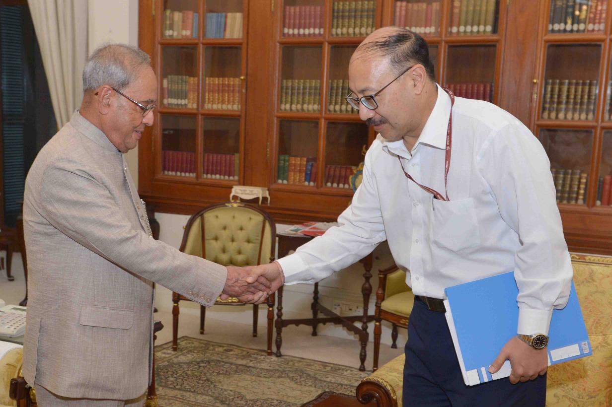 | Caption: | The President of India, Shri Pranab Mukherjee meeting with Shri Harsh Vardhan Shringla, High Commissioner of India to Bangladesh, at Rashtrapati Bhavan on July 01, 2016. |