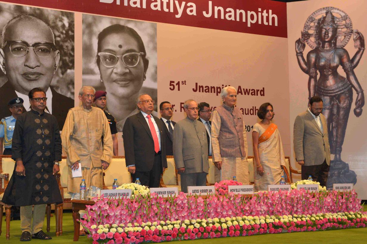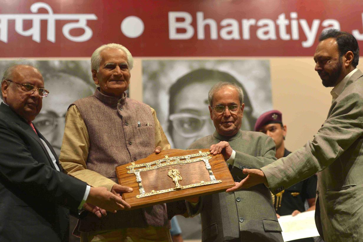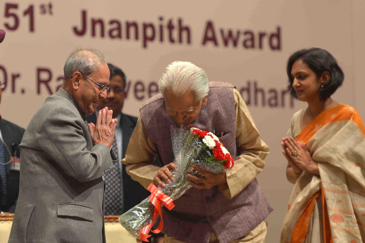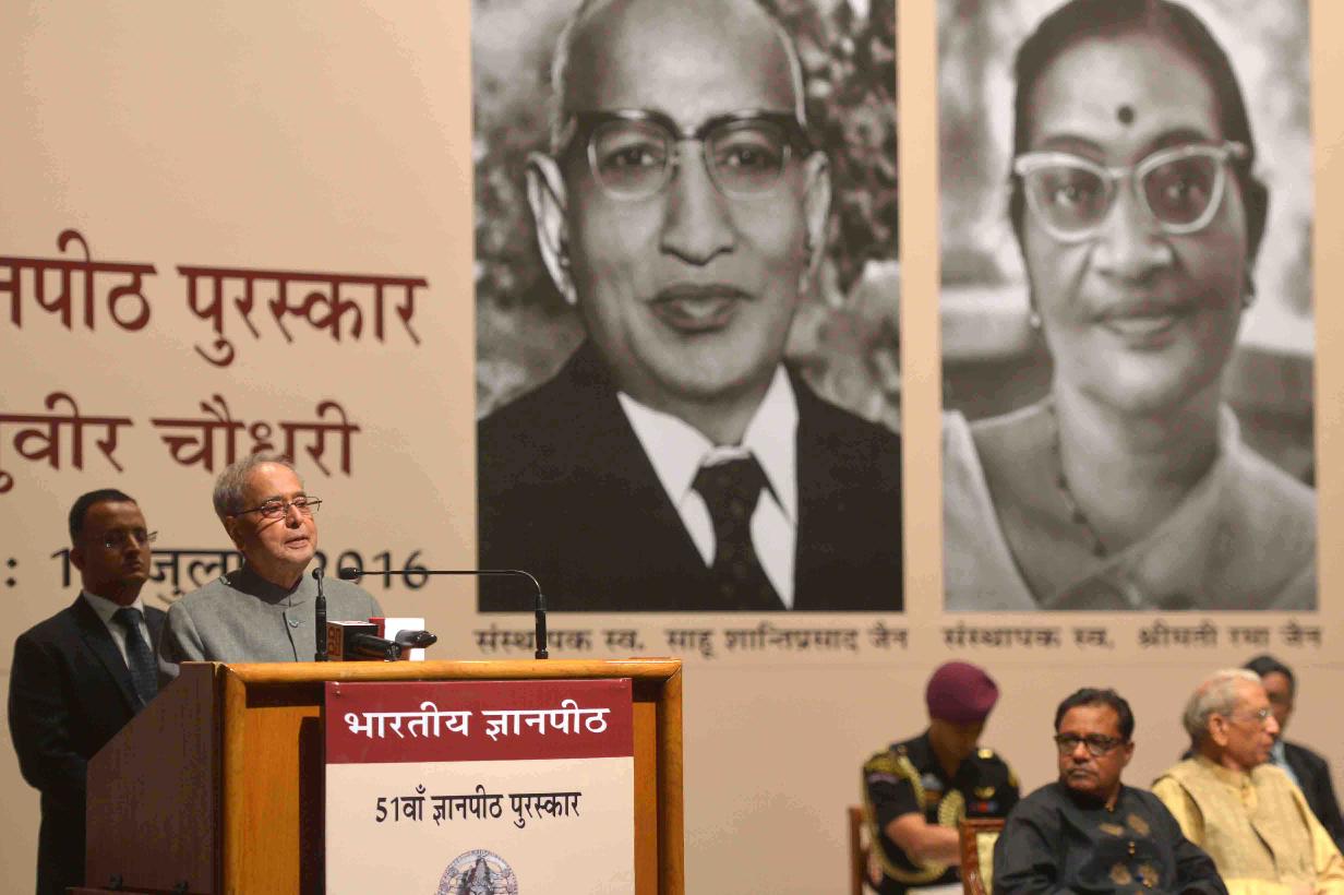 | Caption: | The President of India, Shri Pranab Mukherjee presenting the 51st Jnanpith Award to Dr. Raghuveer Chaudhary, at Balyogi Auditorium, Parliament Library Building, Parliament House, in New Delhi on July 11, 2016. |