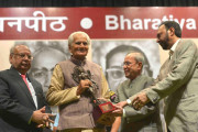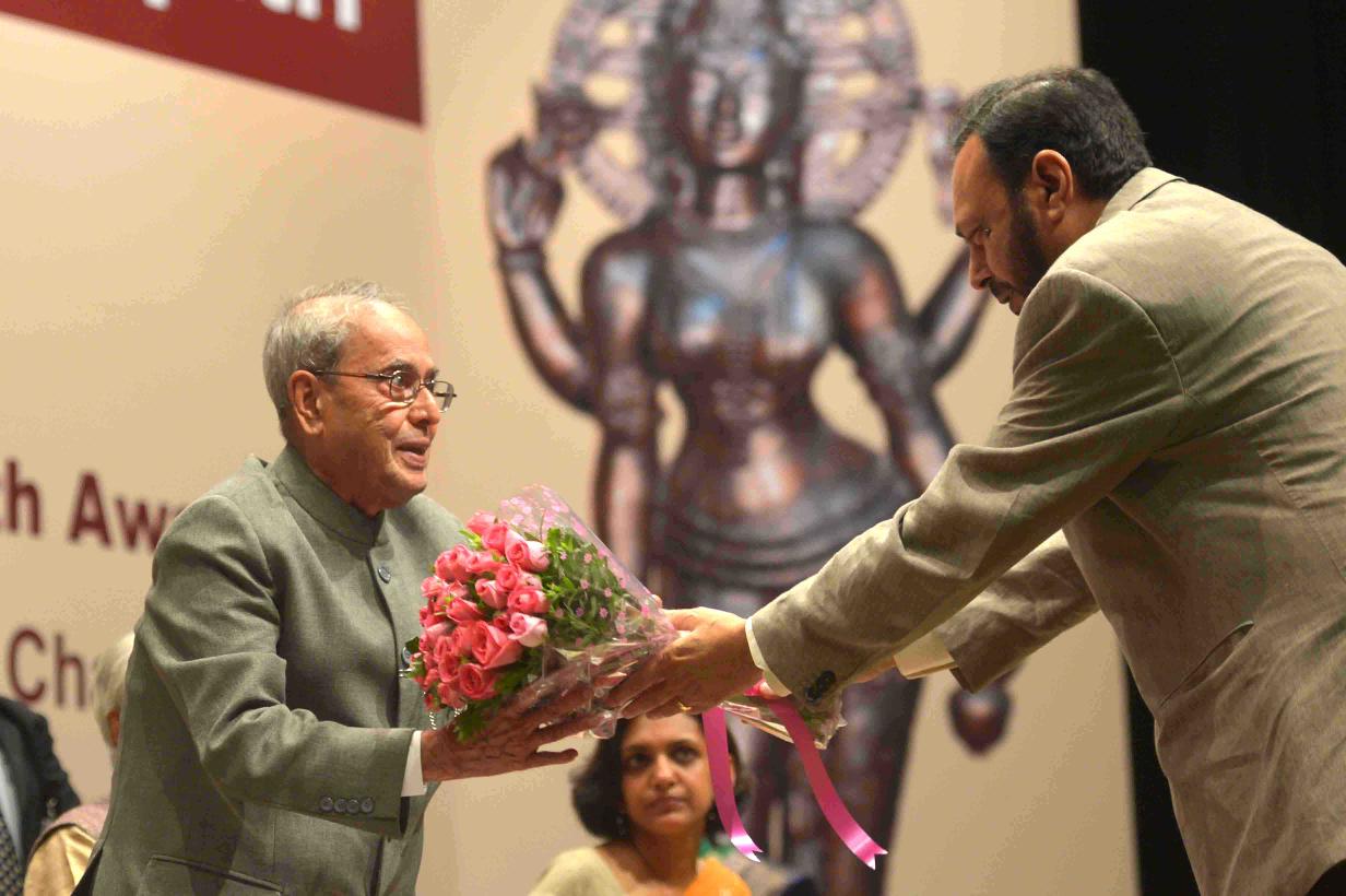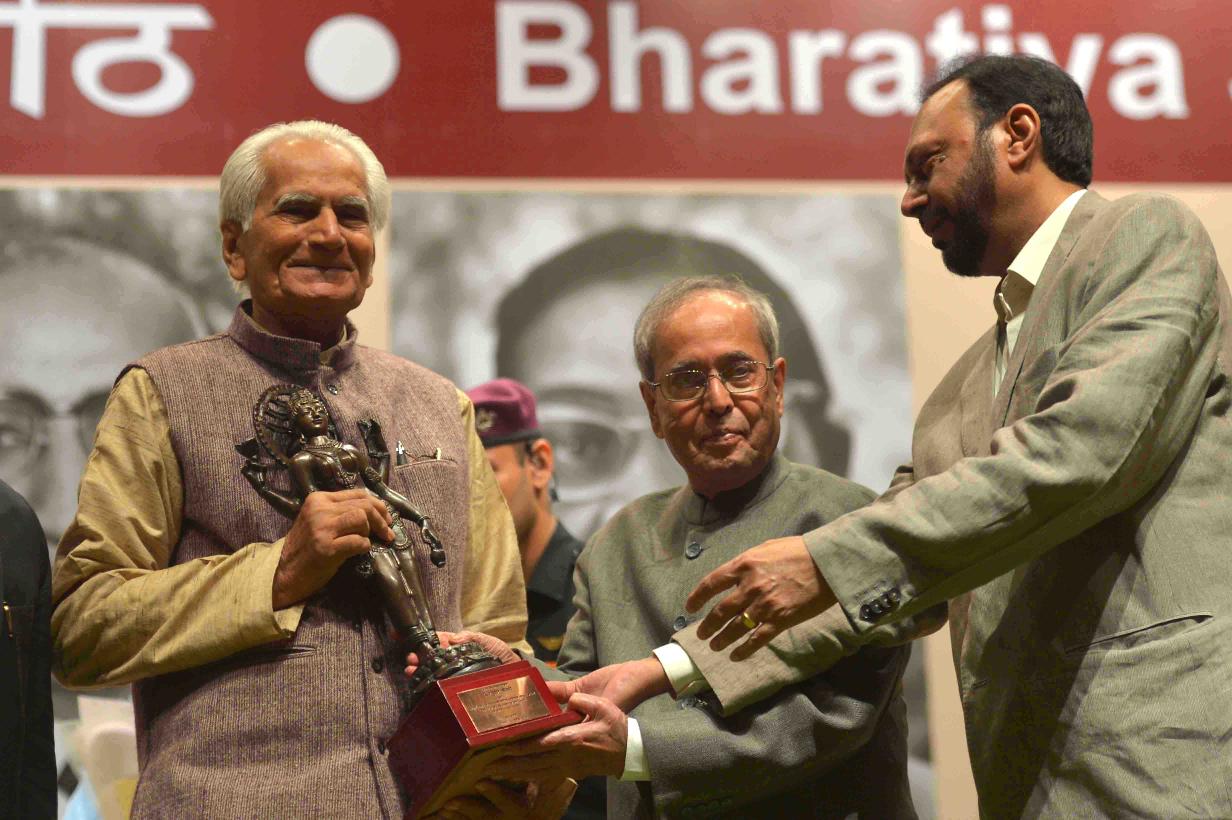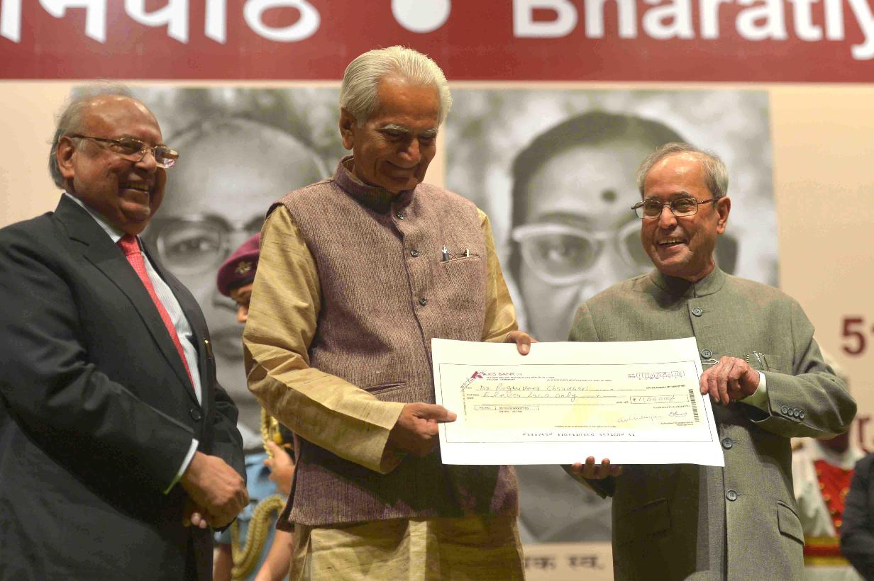 | Caption: | The President of India, Shri Pranab Mukherjee presenting the 51st Jnanpith Award to Dr. Raghuveer Chaudhary, at Balyogi Auditorium, Parliament Library Building, Parliament House, in New Delhi on July 11, 2016. |