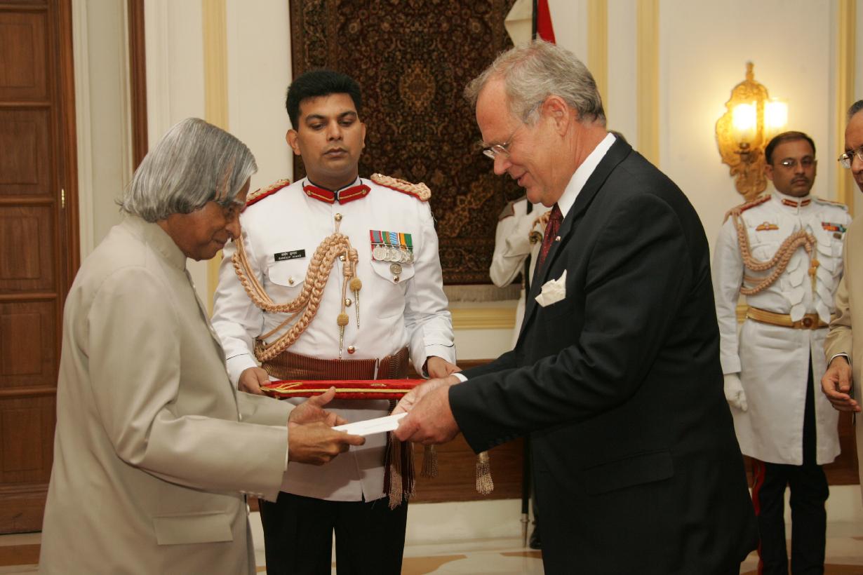 | Caption: | The Ambassador-Designate of Denmark to India, HE Mr Ole Lonsmann Poulsen presenting his credential to the President of India, Dr A P J Abdul Kalam at the Yellow Drawing Room of Rashtrapati Bhavan in New Delhi on Sep 12, 2006 |