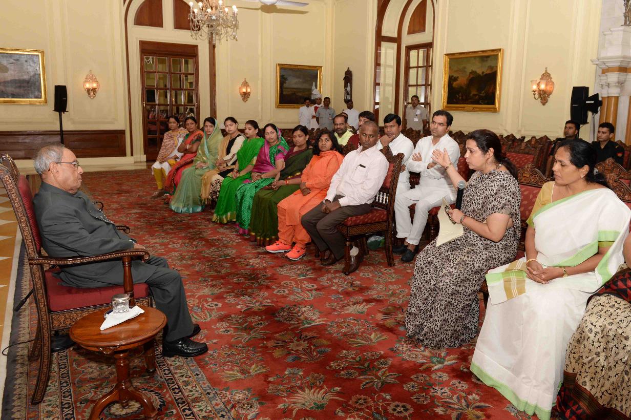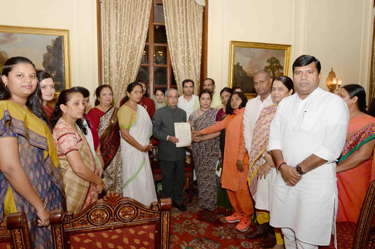 | Caption: | The President of India, Shri Pranab Mukherjee meeting with Smt. Meenakshi Lekhi, MP (LS) and Chairperson, Committee of Privileges along with a delegation of Women Member of Parliament (Lok Sabha & Rajya Sabha) from BJP, Delhi, at Rashtrapati Bhavan on July 27, 2016. |