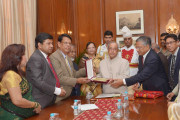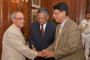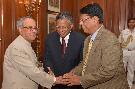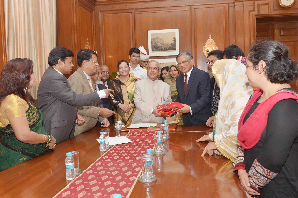 | Caption: | The President of India, Shri Pranab Mukherjee meeting with Shri Fakhrul Imam with others, at Rashtrapati Bhavan on August 04, 2016. |
