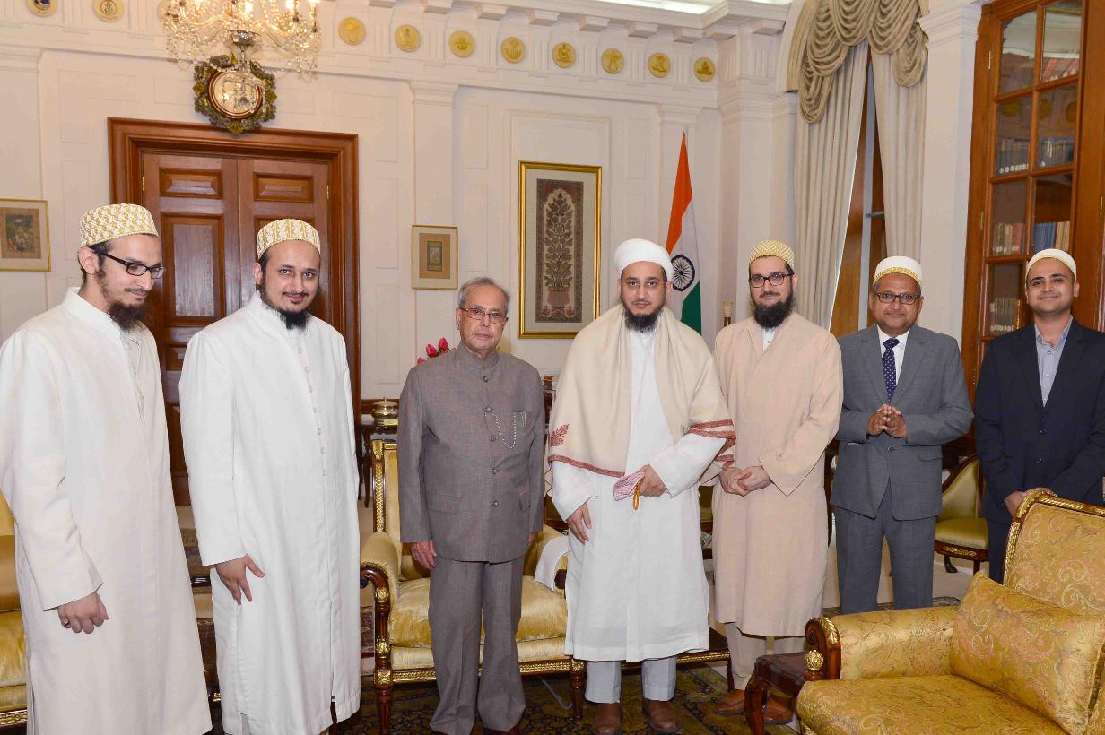 | Caption: | The President of India, Shri Pranab Mukherjee meeting with HH Taher Fakhruddin, Head of the Dawoodi Bohra Muslims Community alongwith his family members from Mumbai, at Rashtrapati Bhavan on July 08, 2016. |