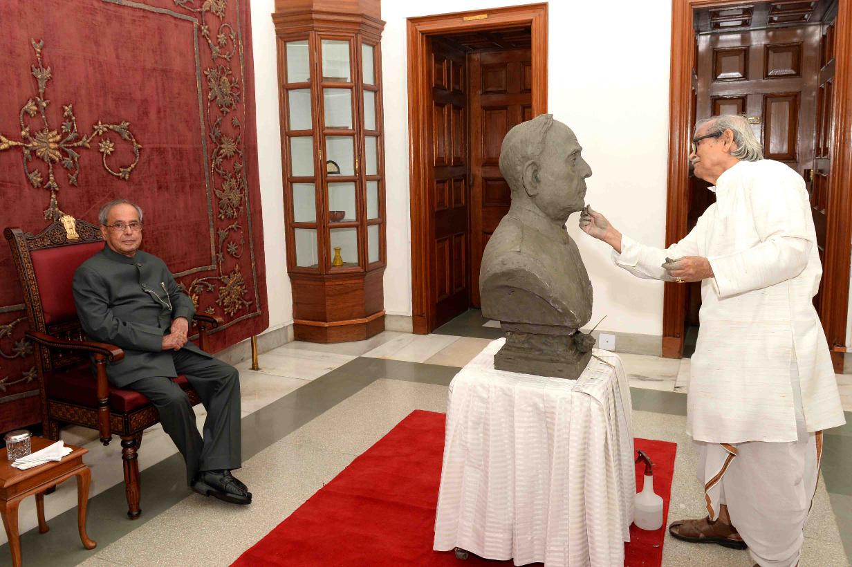 | Caption: | The President of India, Shri Pranab Mukherjee with Shri Niranjan Pradan, Sculptor, at Rashtrapati Bhavan on July 27, 2016. |