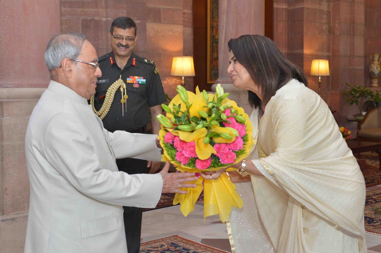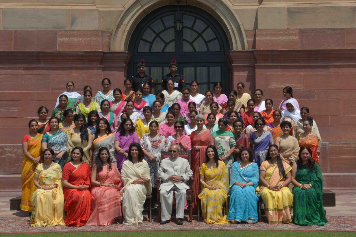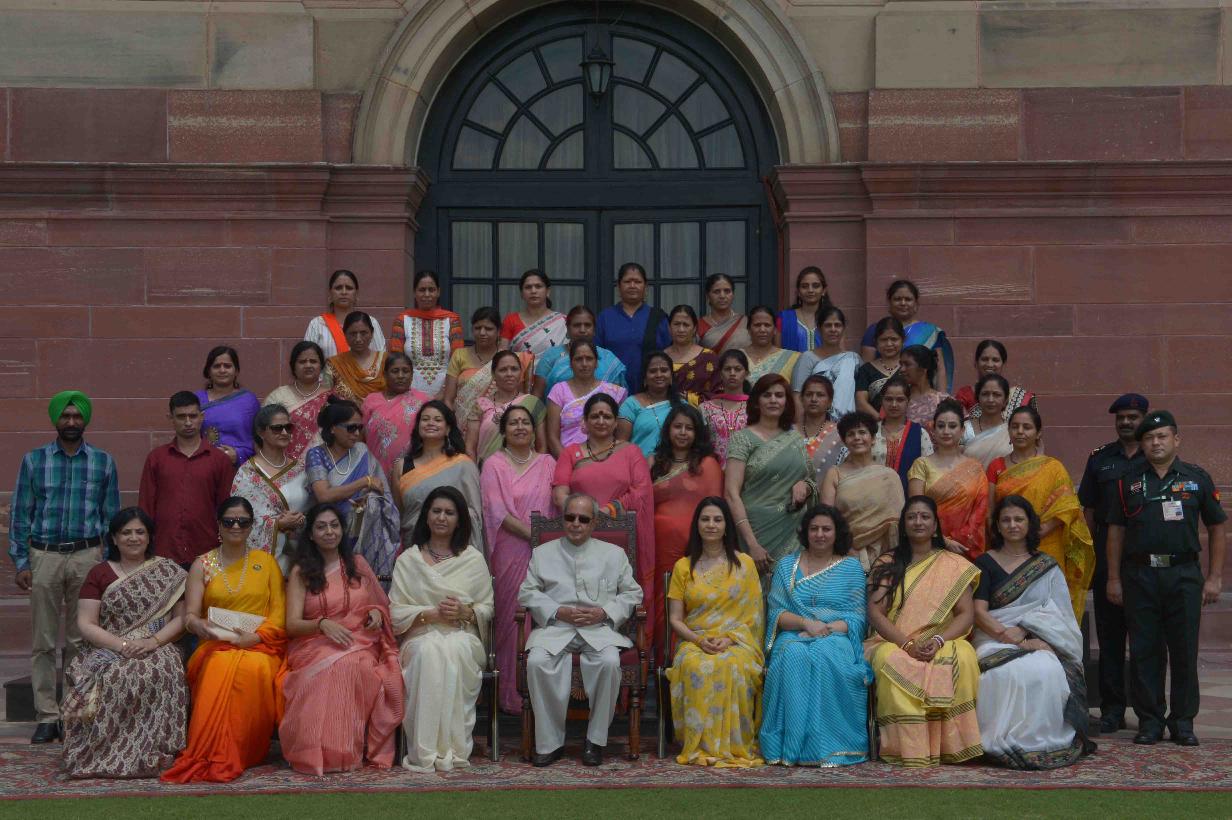 | Caption: | The President of India, Shri Pranab Mukherjee in Group Photographs with Veer Naris, Widows and volunteer ladies of Army working with AWWA Welfare Projects, at Rashtrapati Bhavan on August 04, 2016. |