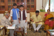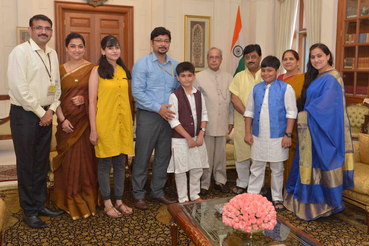 | Caption: | The President of India, Shri Pranab Mukherjee meeting with Shri Ravindra Kumar Pandey, MP (LS) alongwith his family members, at Rashtrapati Bhavan on August 04, 2016. |
