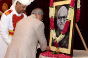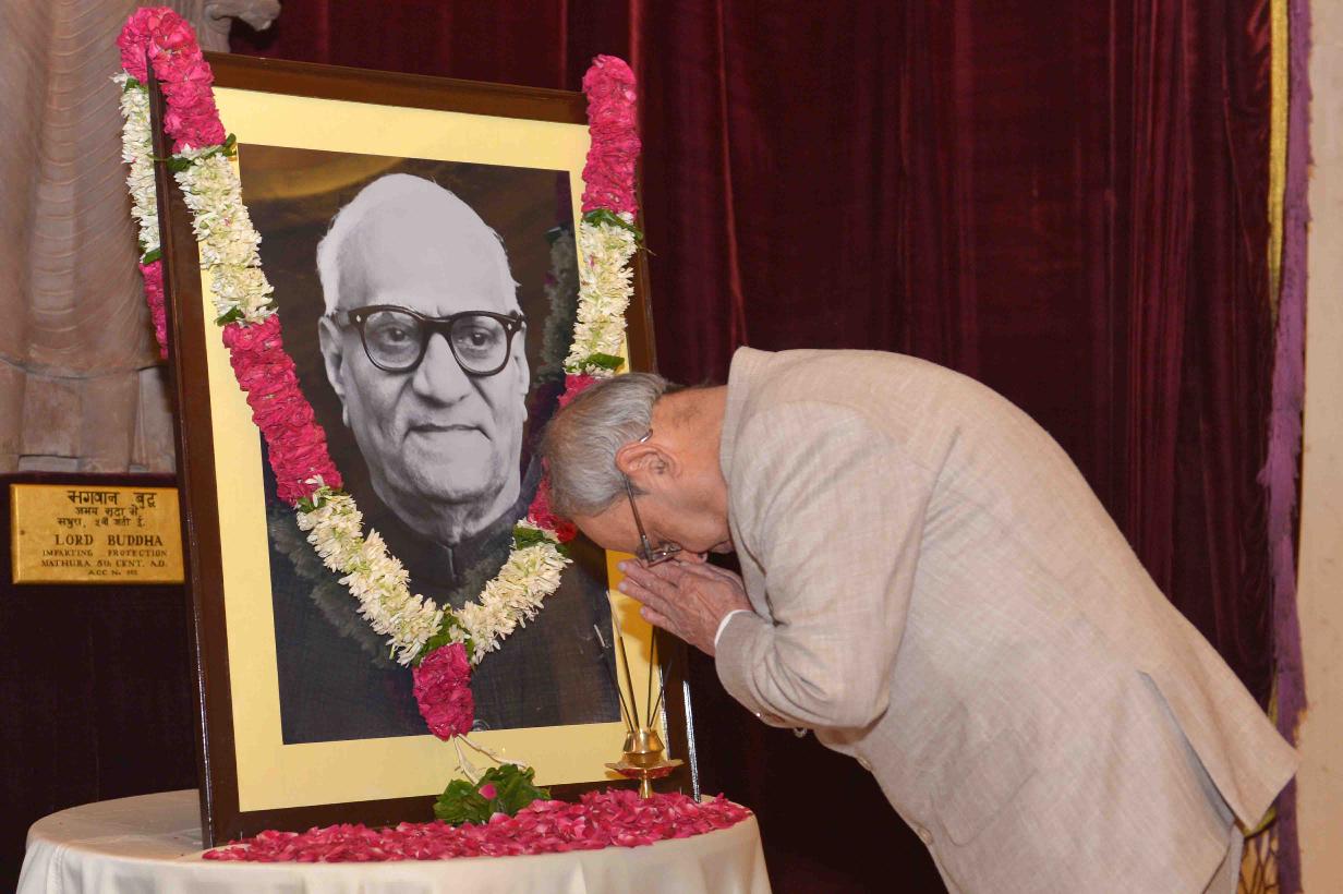| Caption: | The President of India, Shri Pranab Mukherjee paying Floral Tributes at the Portrait of Former President of India, Shri V.V. Giri on the occasion of his Birth Anniversary, at Rashtrapati Bhavan on August 10, 2016. |