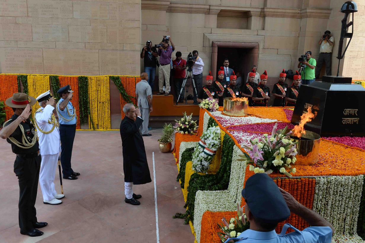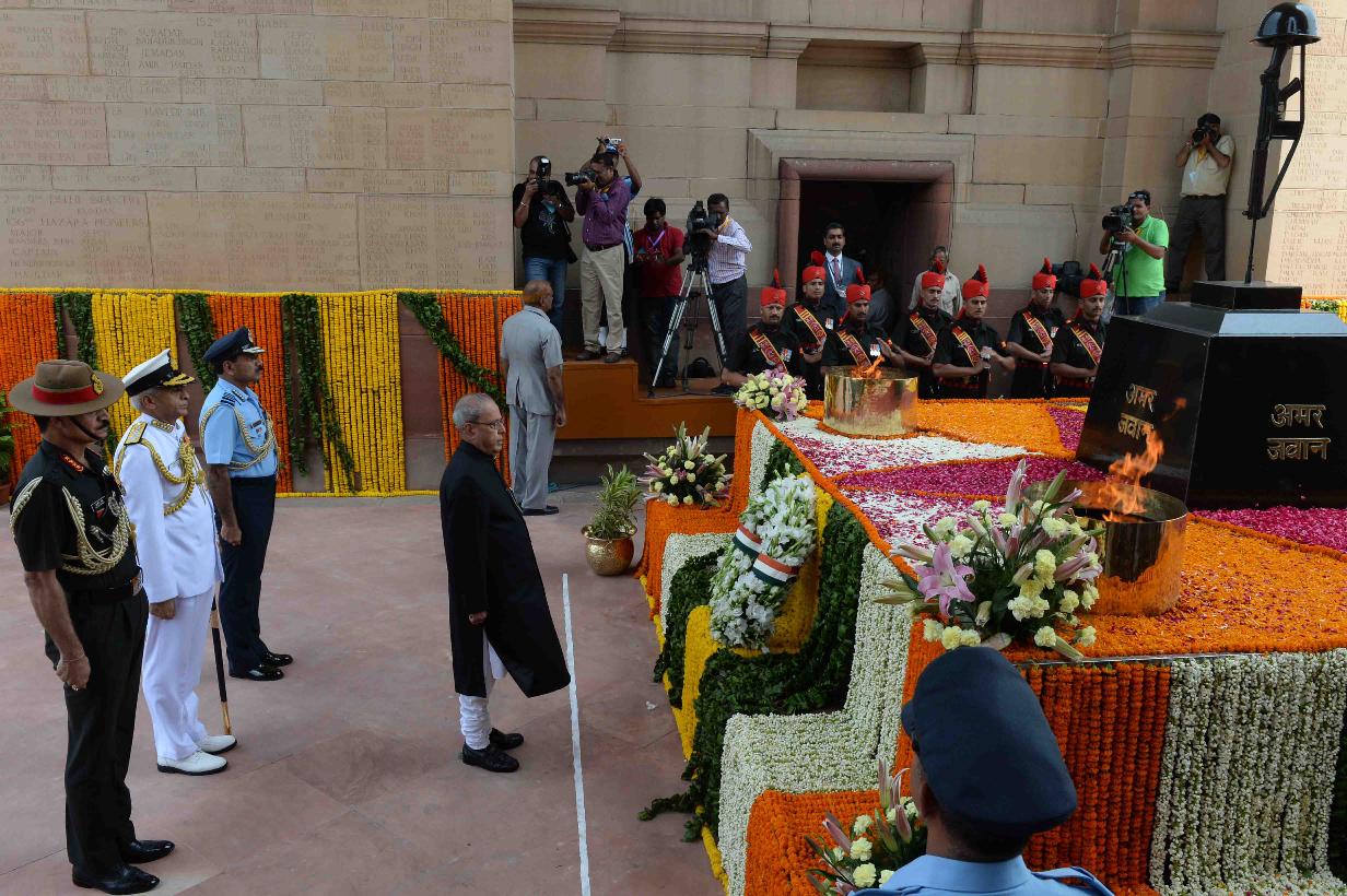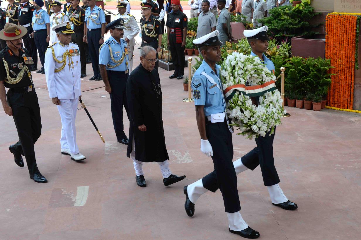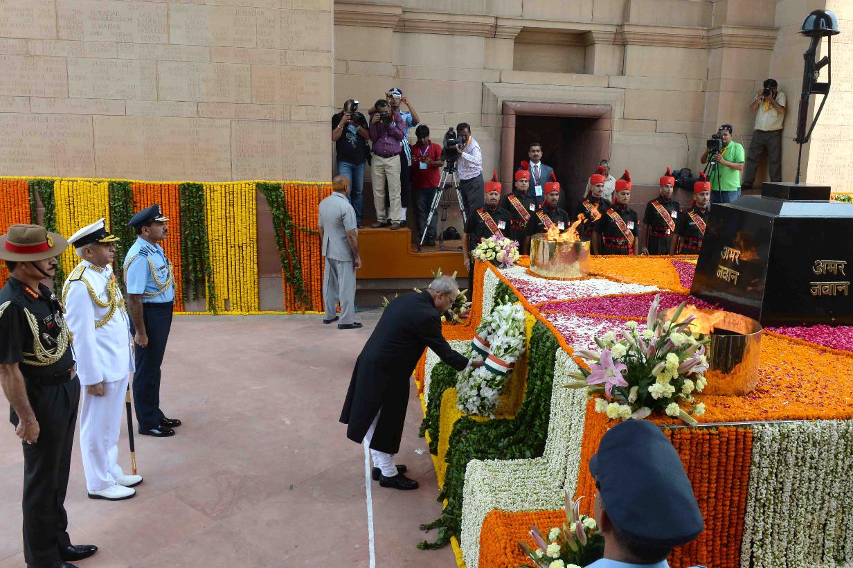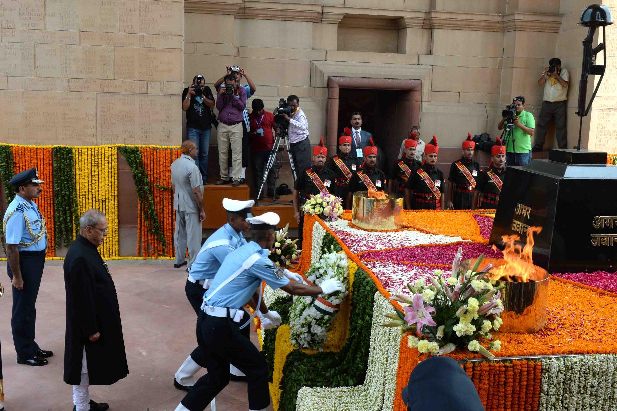 | Caption: | The President of India, Shri Pranab Mukherjee laying wreath at Amar Jawan Jyoti, on the occasion of 70th Independence Day, at India Gate, in New Delhi on August 15, 2016. |