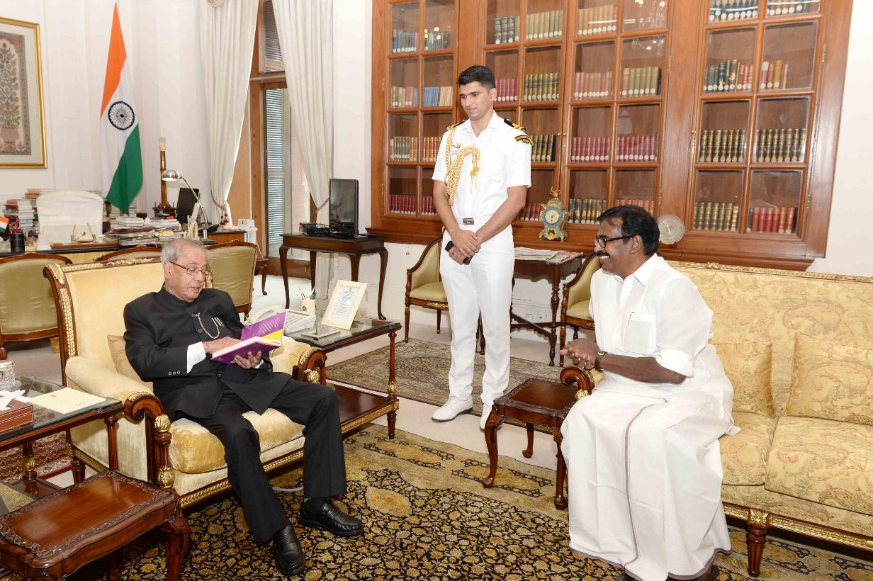 | Caption: | The President of India, Shri Pranab Mukherjee meeting with Shri S.S. Palanimanickam, former Minister of State for Finance, at Rashtrapati Bhavan on July 19, 2016. |