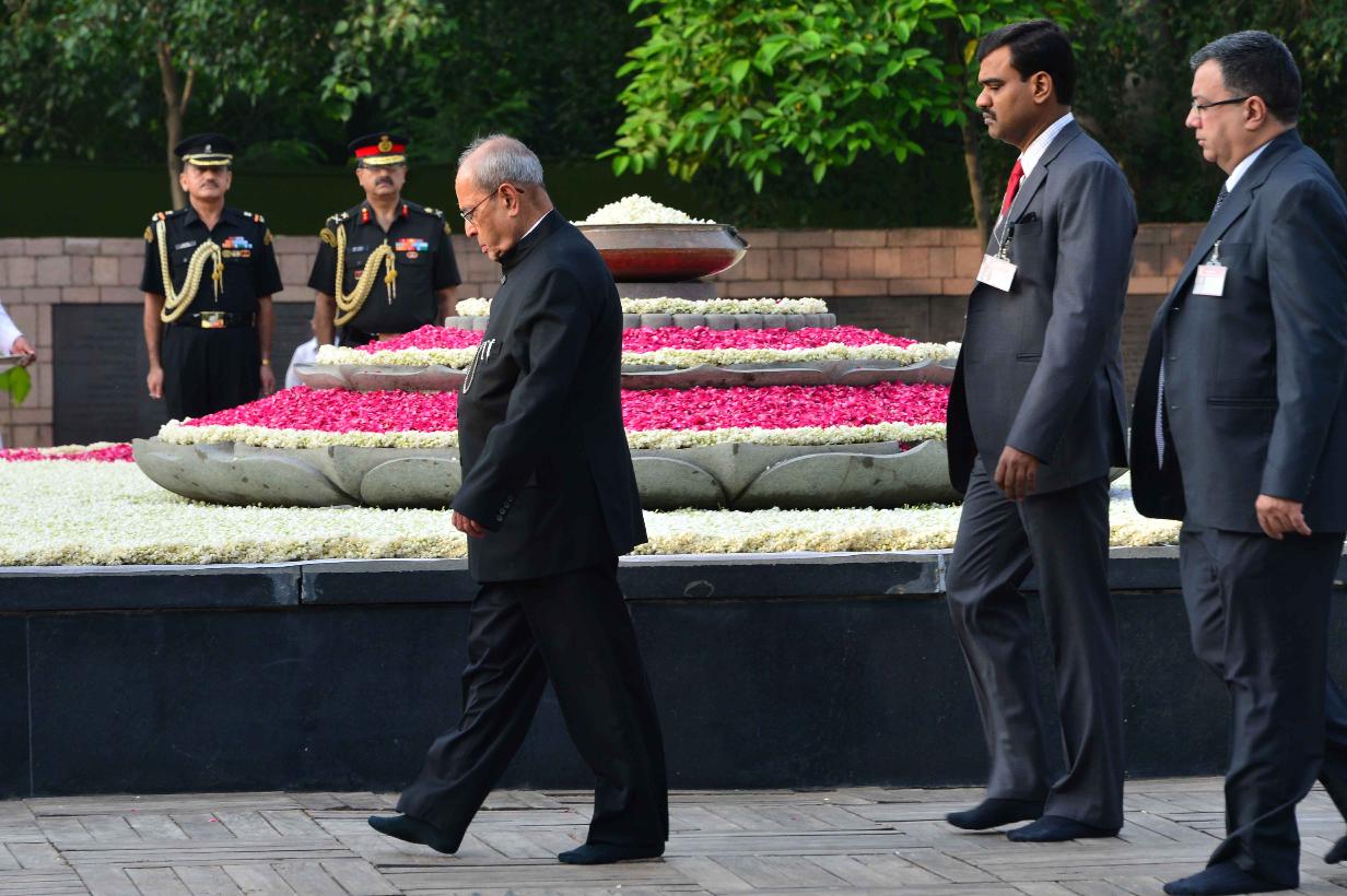 | Caption: | The President of India, Shri Pranab Mukherjee paying homage at the Samadhi of the former Prime Minister of India, Late Shri Rajiv Gandhi, on his Birth Anniversary, at Vir Bhoomi, in Delhi on August 20, 2016. |