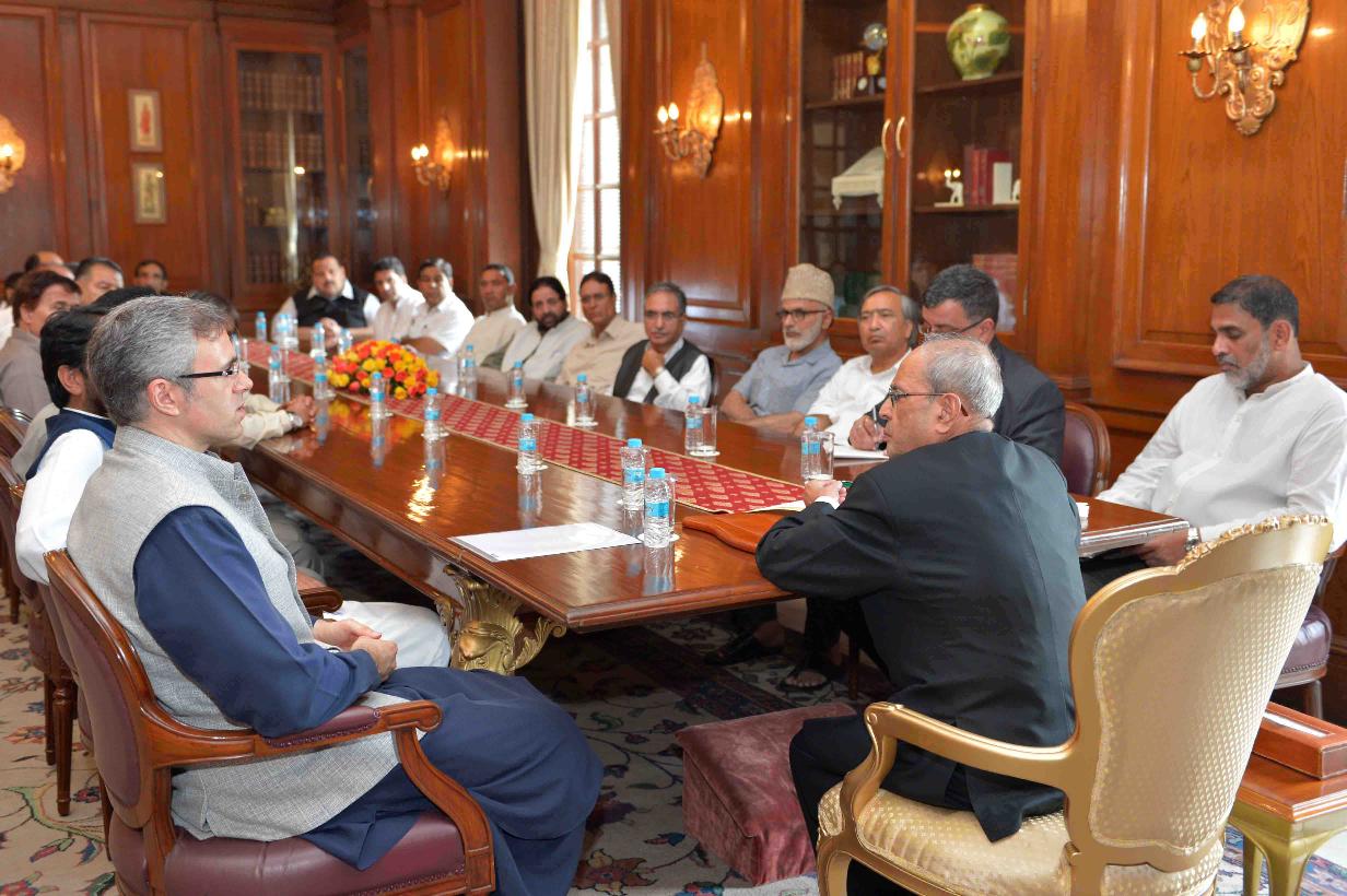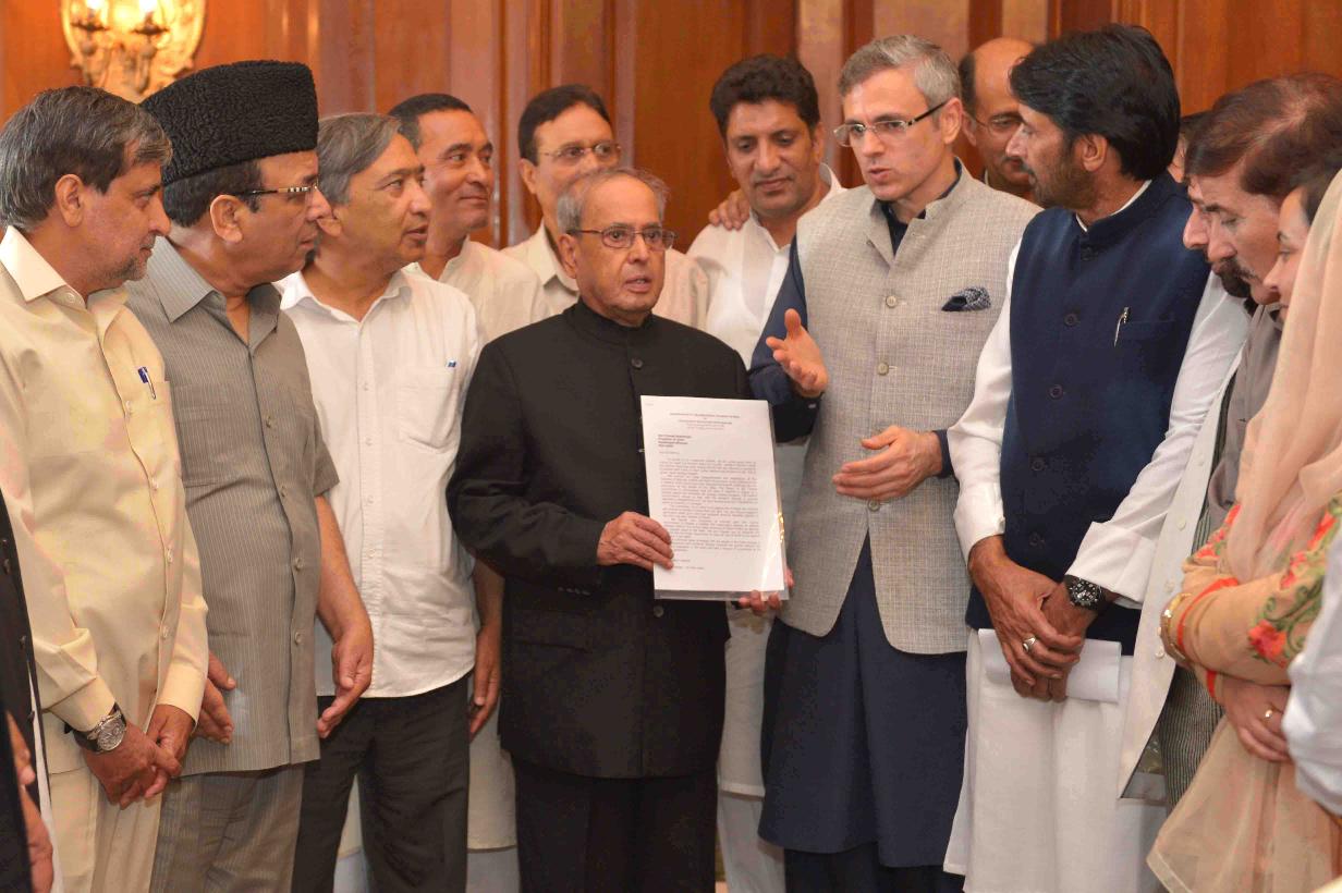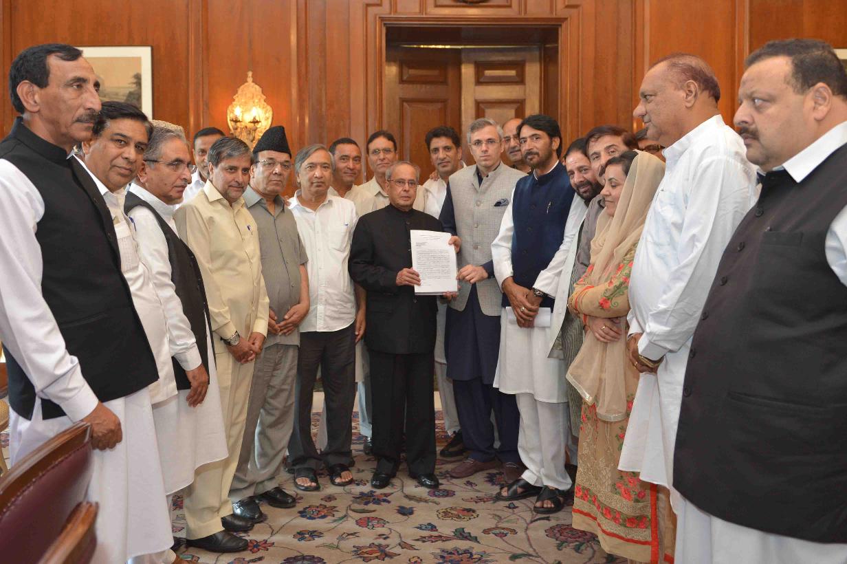| Caption: | The President of India, Shri Pranab Mukherjee meeting with an all party delegation of MLAs from Jammu & Kashmir led by Shri Omar Abdullah, former Chief Minister of Jammu & Kashmir, at Rashtrapati Bhavan on August 20, 2016. |