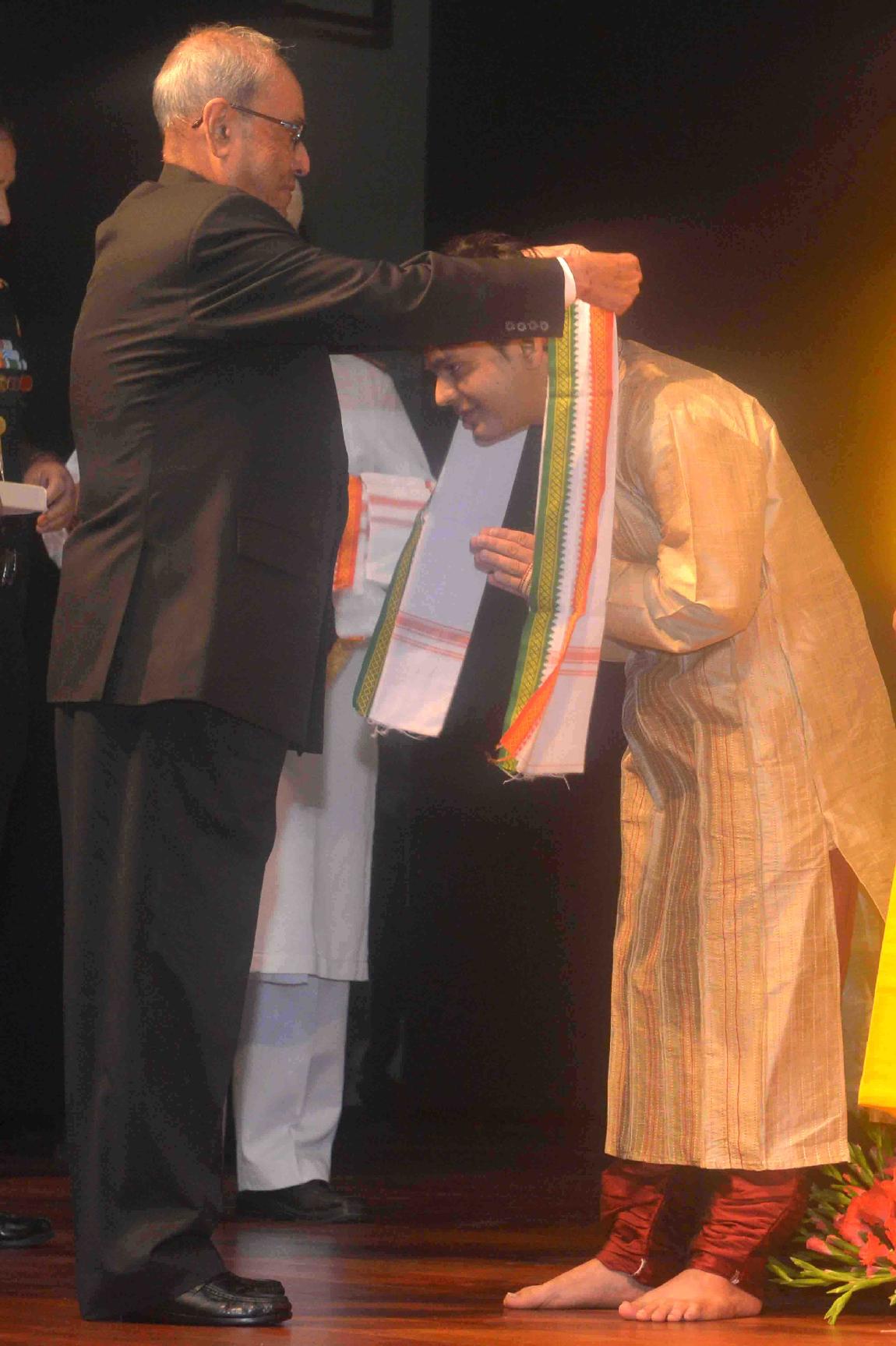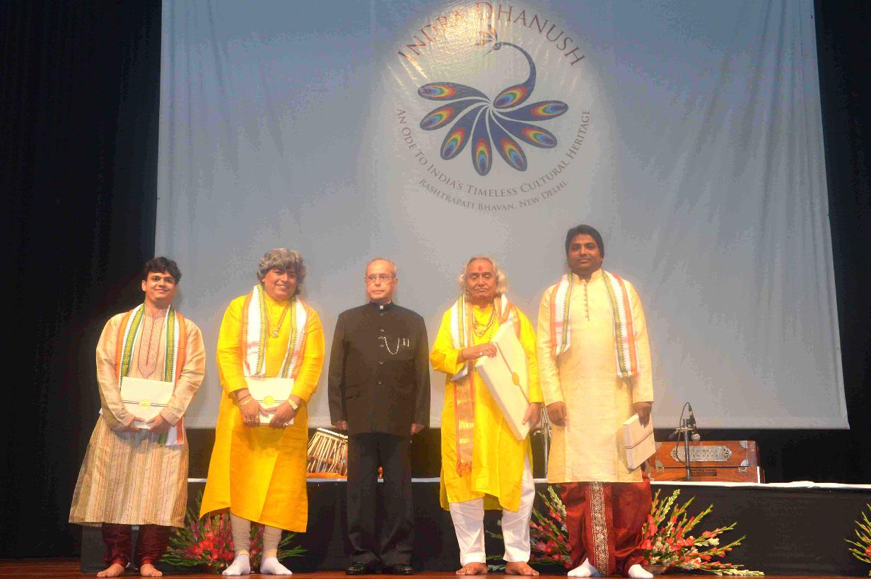 | Caption: | The President of India, Shri Pranab Mukherjee felicitating the artists after witnessing a Hindustani Classical Music Performance by Pandit Chhannulal Mishra, at Rashtrapati Bhavan Auditorium on August 20, 2016. |