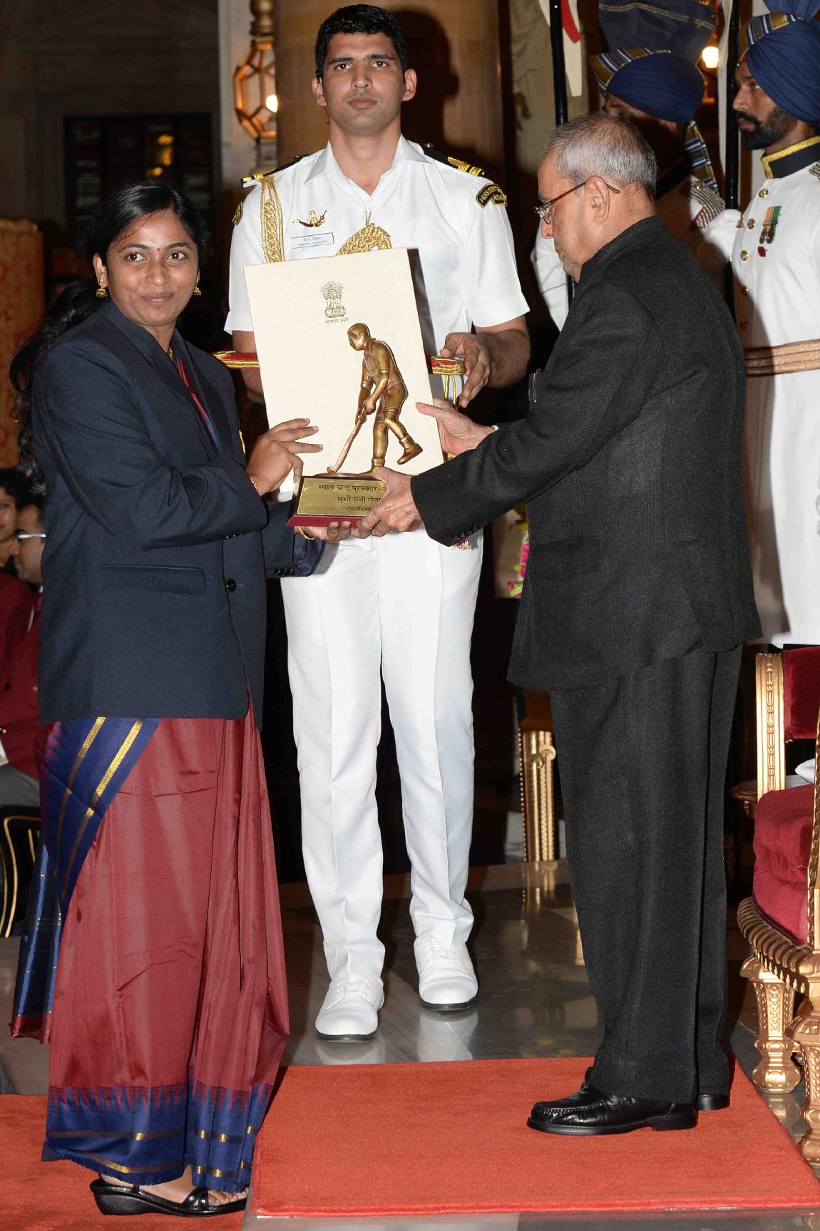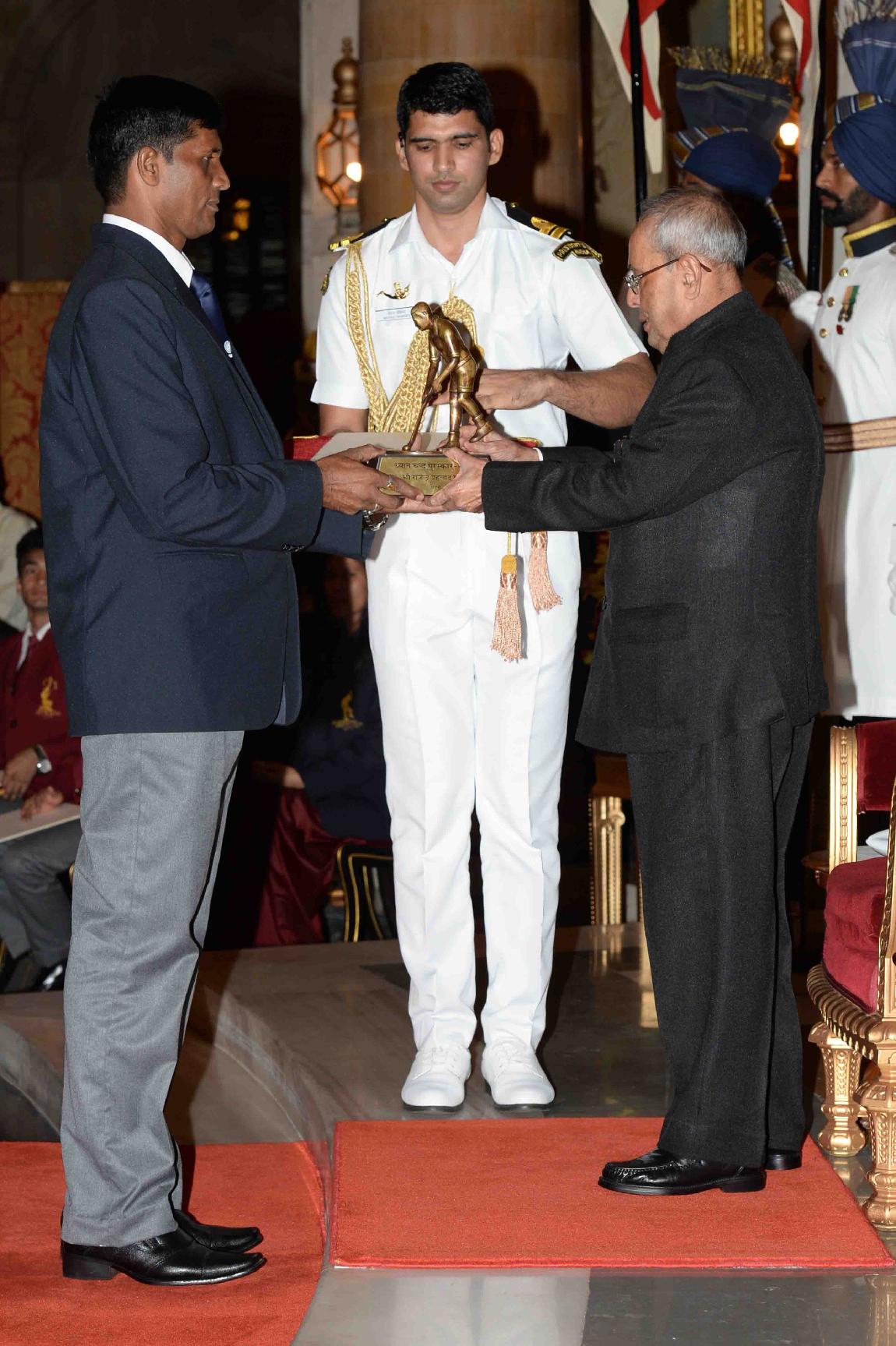 | Caption: | The President of India, Shri Pranab Mukherjee presenting the Dhyan Chand Awards 2016, at the National Sports & Adventure Awards function, at Rashtrapati Bhavan on August 29, 2016. |