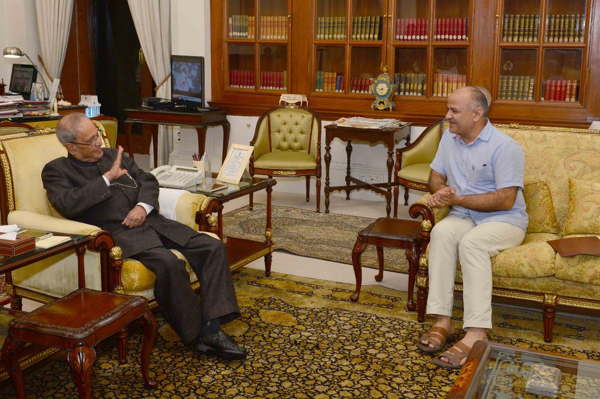 | Caption: | The President of India, Shri Pranab Mukherjee meeting with Shri Manish Sisodia, Deputy Chief Minister of Delhi, at Rashtrapati Bhavan on August 30, 2016. |