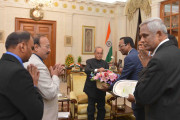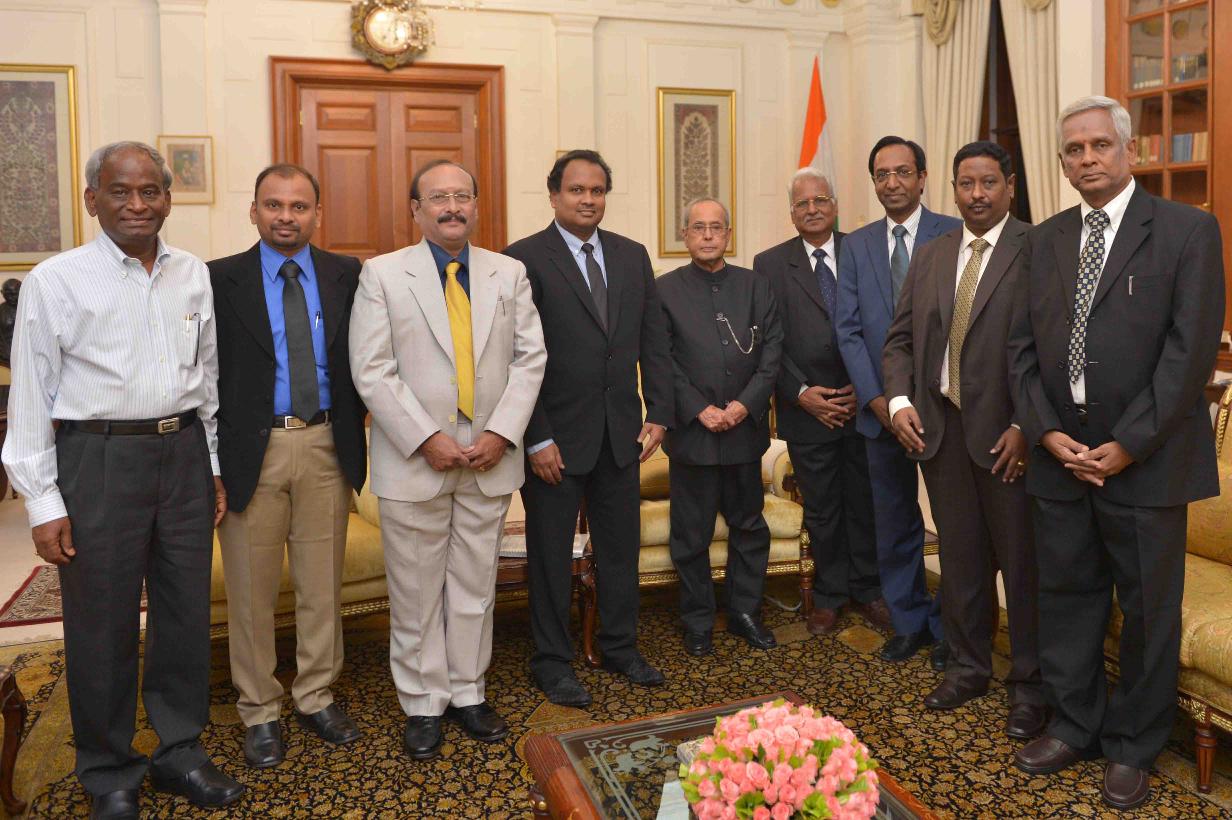 | Caption: | The President of India, Shri Pranab Mukherjee meeting with Shri B. Swaminathan, Chairman with others from Karur Vysya Bank, Tamil Nadu, at Rashtrapati Bhavan on September 05, 2016. |