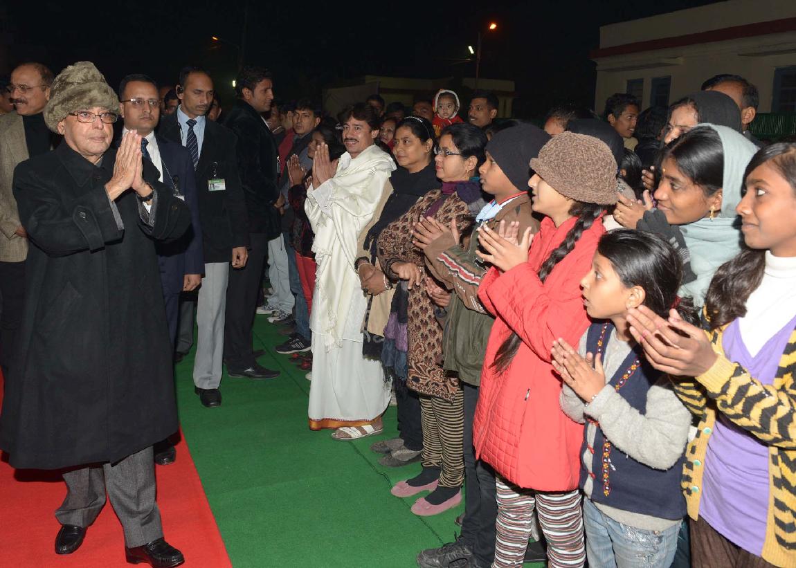 | Caption: | The President of India, Shri Pranab Mukherjee during visit to Food Street on the occasion of Makar Sankranti and Pongal at President's Estate of Rashtrapati Bhavan in New Delhi on Jan 14, 2014 |